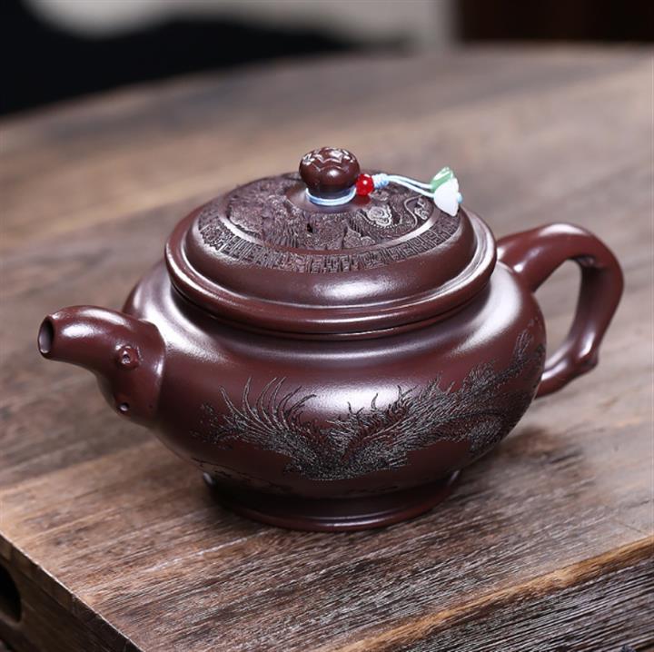 500cc原礦古銅泥浮雕龍鳳呈祥茶壺POT8040