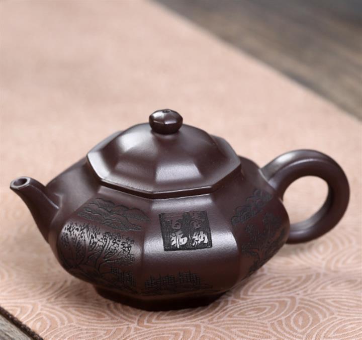 原礦古銅烏泥六方松趣茶壺POT7490