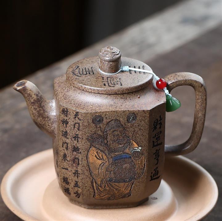 原礦柴燒沈香泥財運亨通四方茶壺POT7488