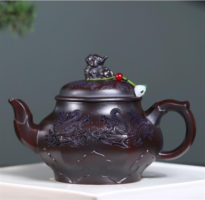 原礦紫泥刻繪龍行天下茶壺POT7483