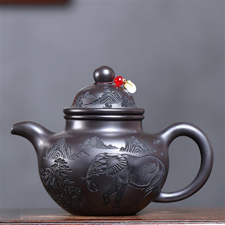 500cc原礦玄鐵石黃福象掇球泡茶壺POT9169