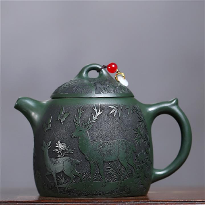 360cc原礦墨綠泥福鹿秦權茶壺POT9172