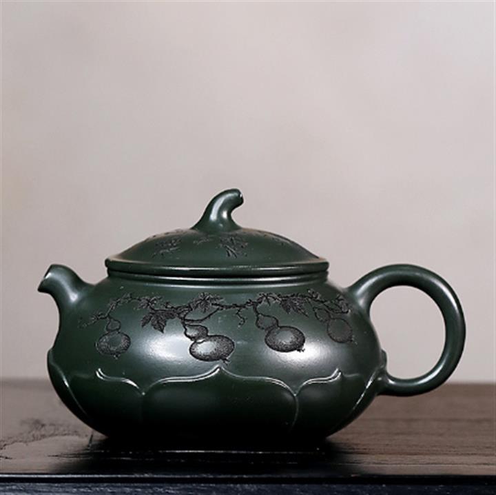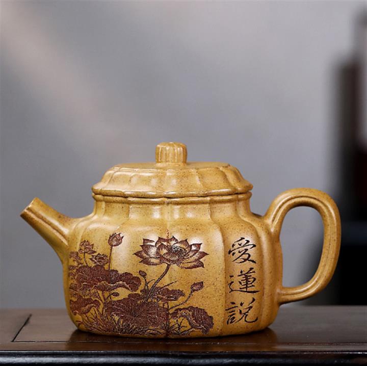 原礦降坡泥刻繪筋紋荷趣茶壺POT7748