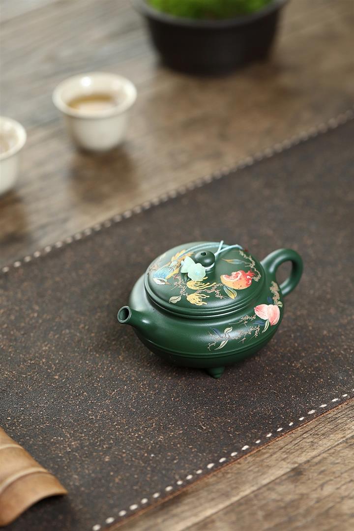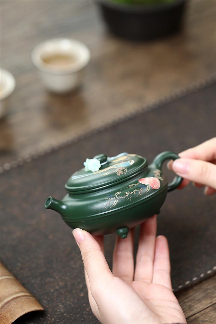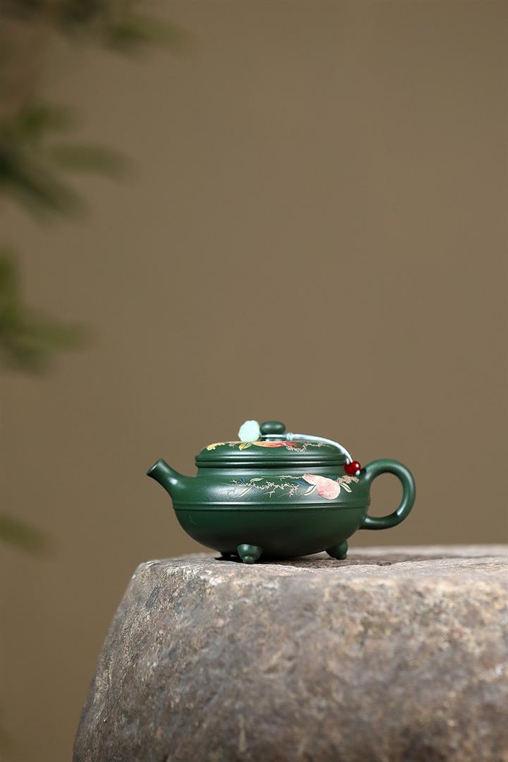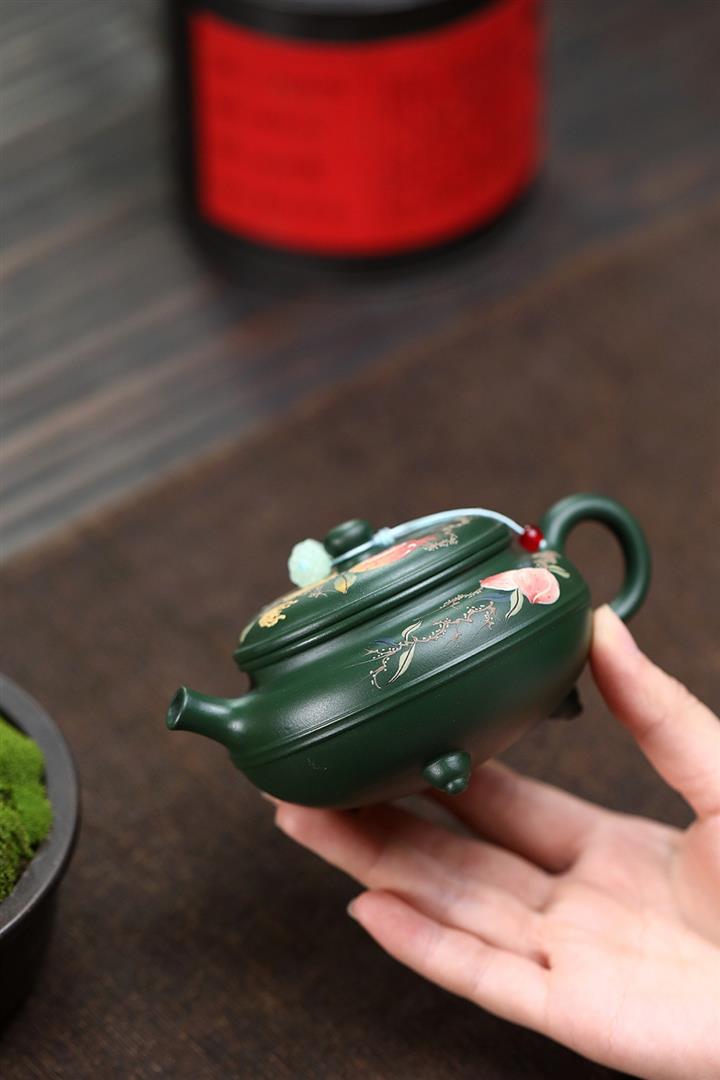 原礦天青泥金玉滿堂紫砂壺POT4387