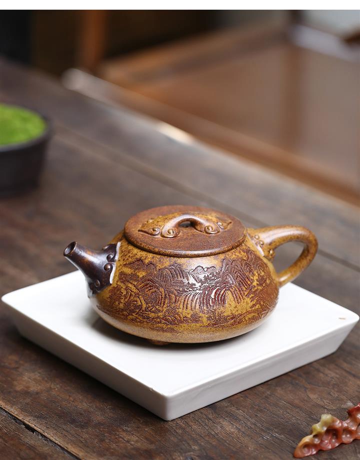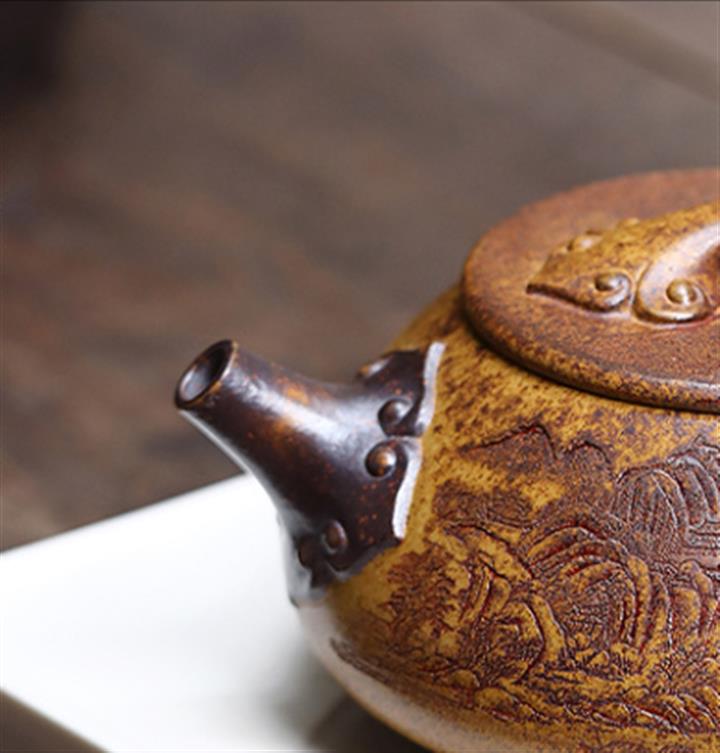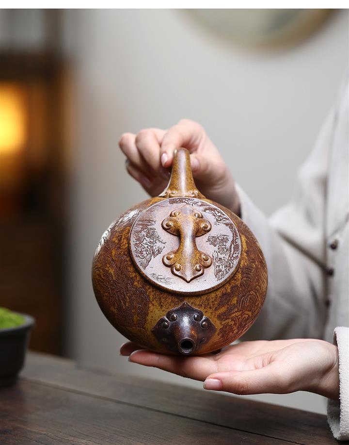 原礦龍骨金砂龍窯柴燒如意石瓢紫砂壺POT6701