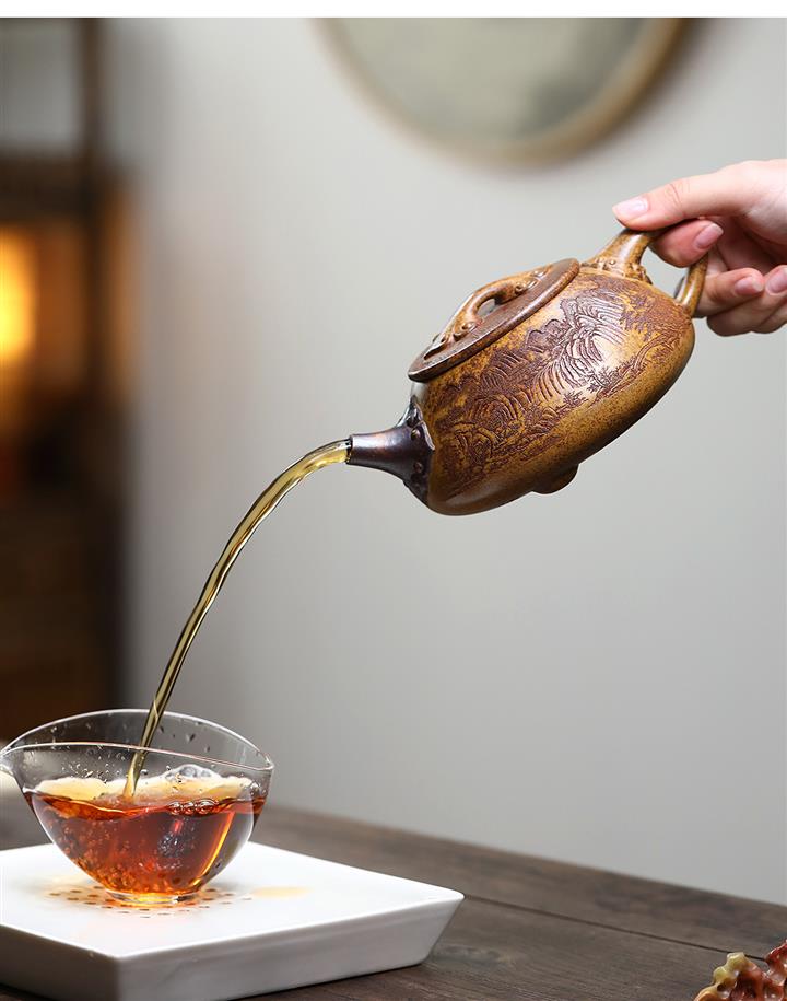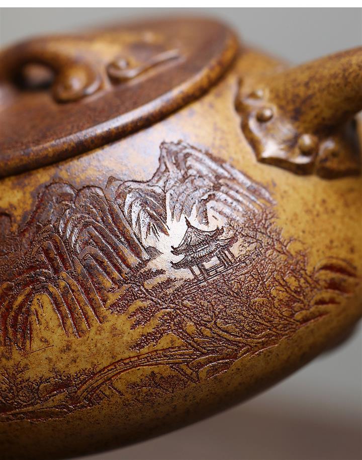 250cc龍骨金砂四方竹石孔雀東南飛茶壺POT8331