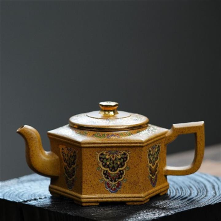 350cc原礦龍骨金砂琺瑯彩六方壺POT8343