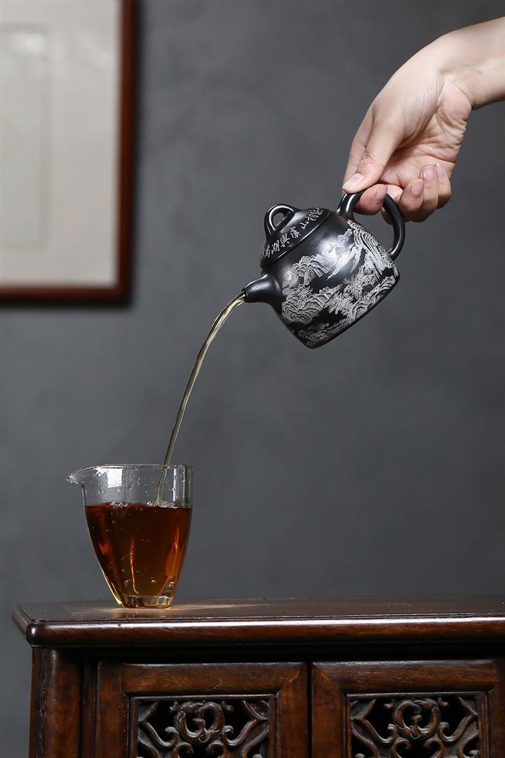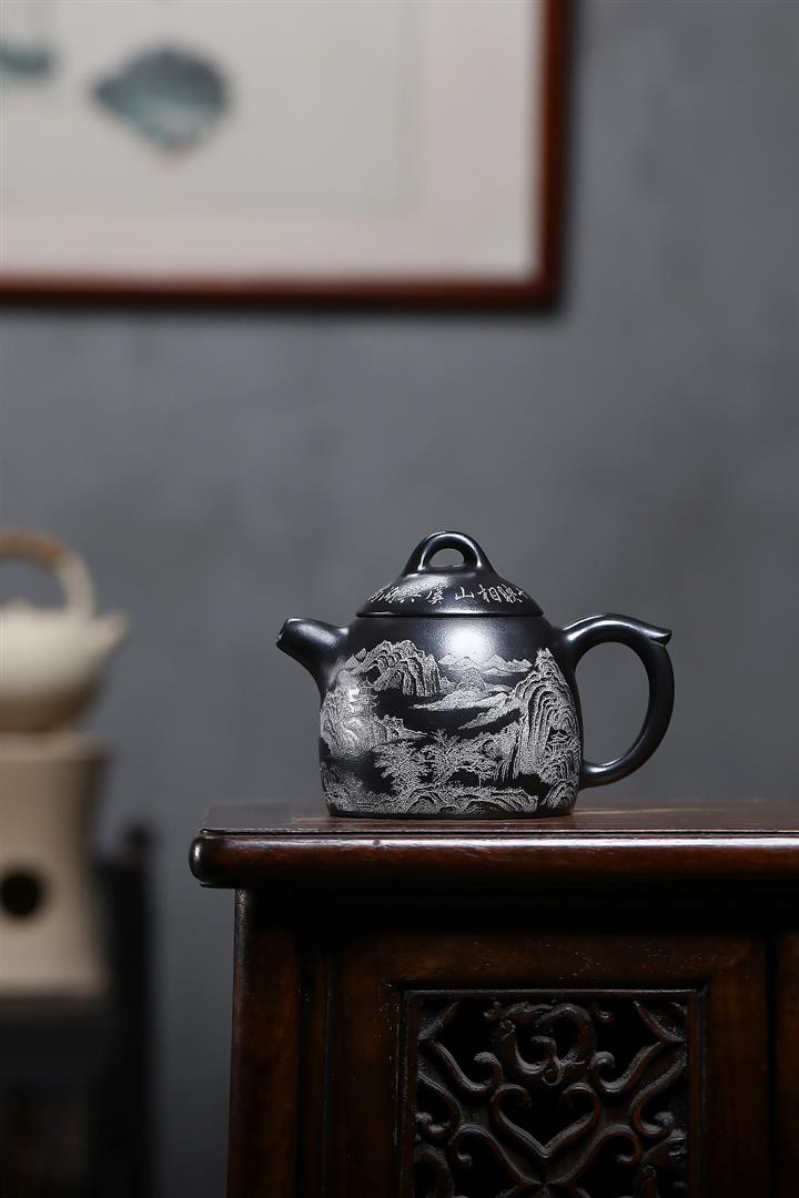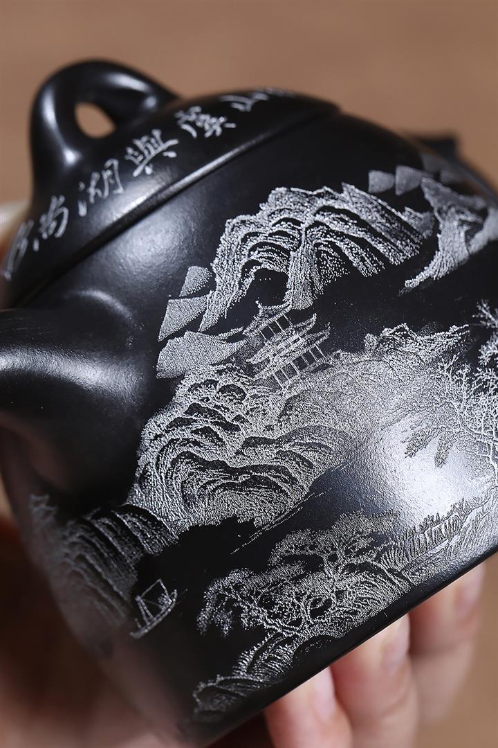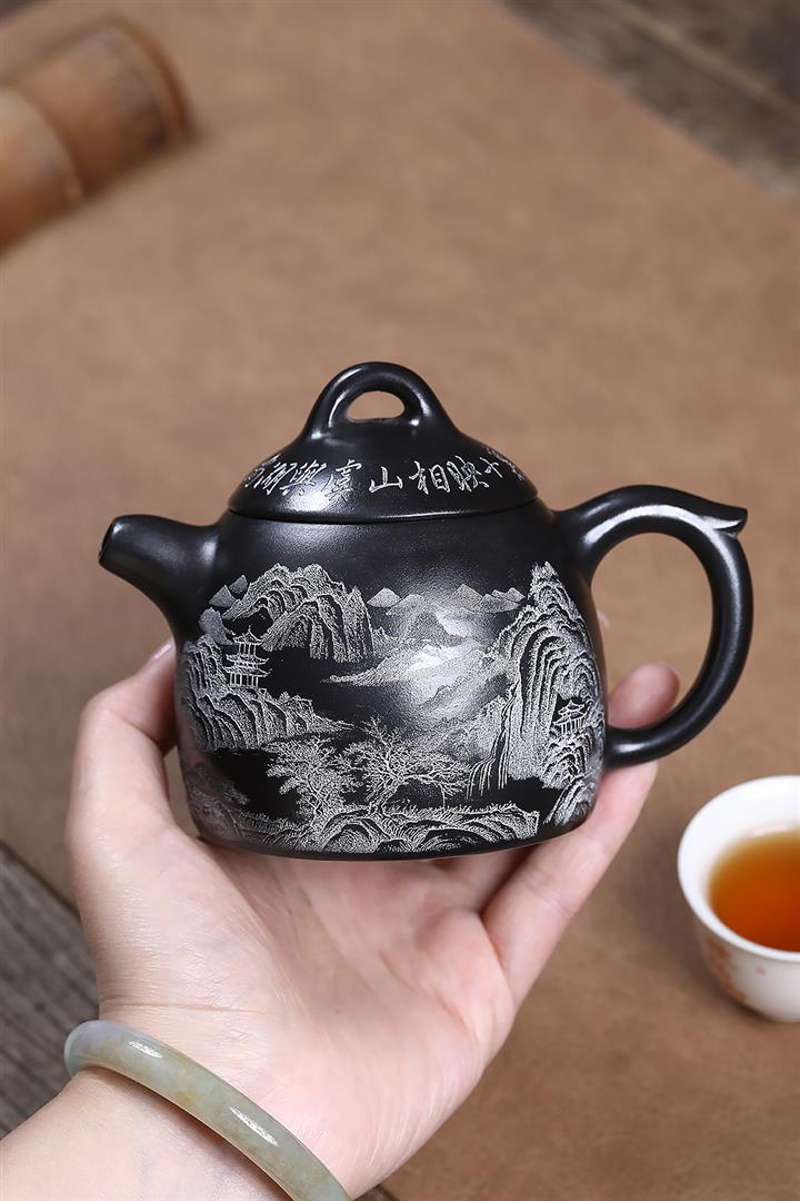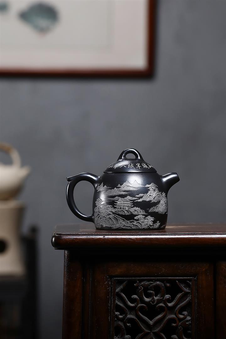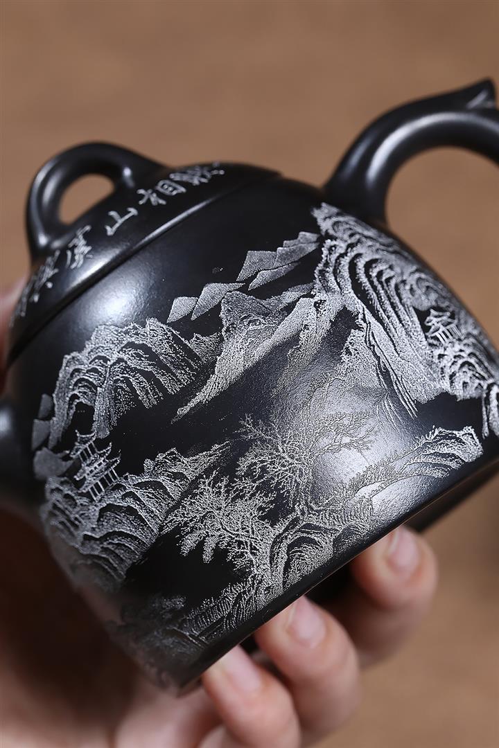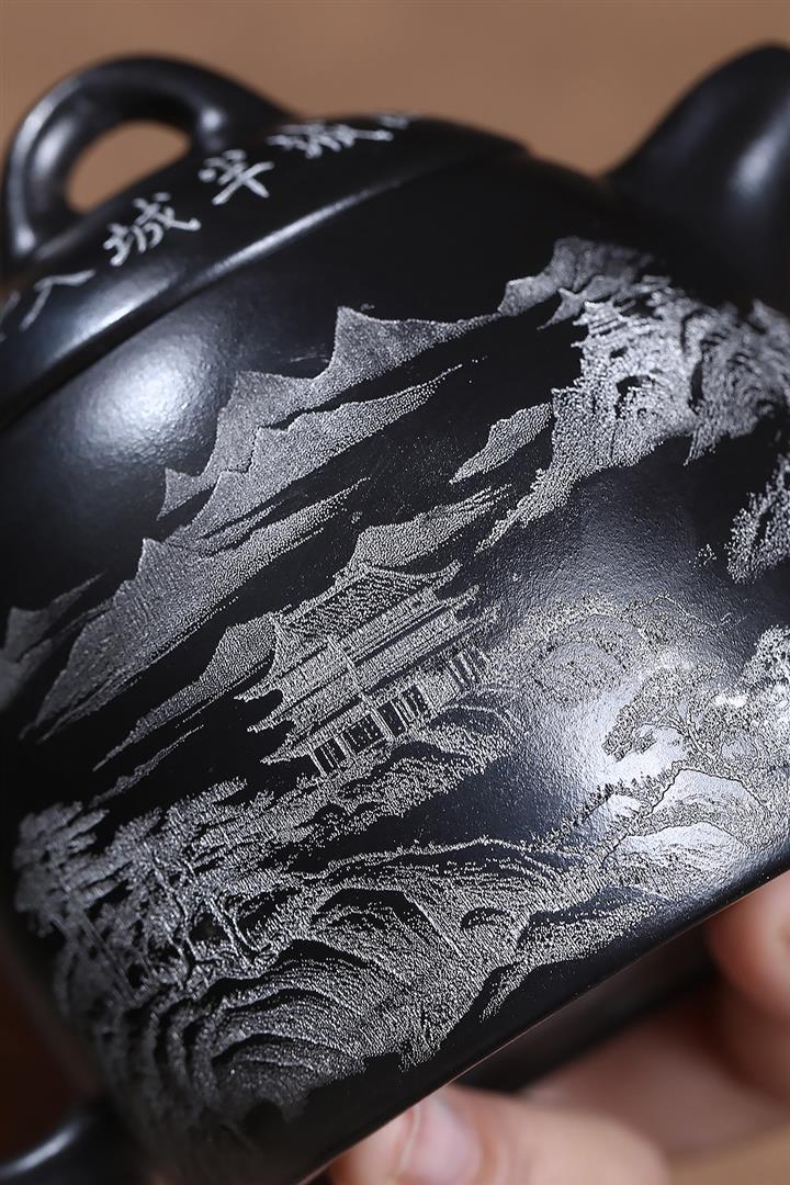 原礦玄鐵石黃山水秦權茶壺POT7022