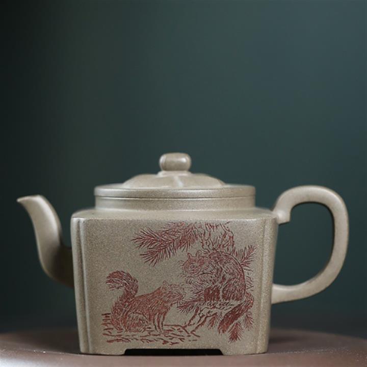 300cc原礦青灰段泥松風方骨泡茶壺POT10110