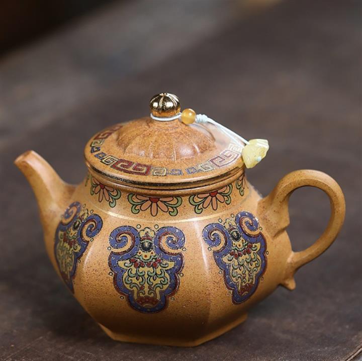 300cc原礦龍骨金砂高溫柴燒琺瑯彩六方潘壺泡茶壺POT10111