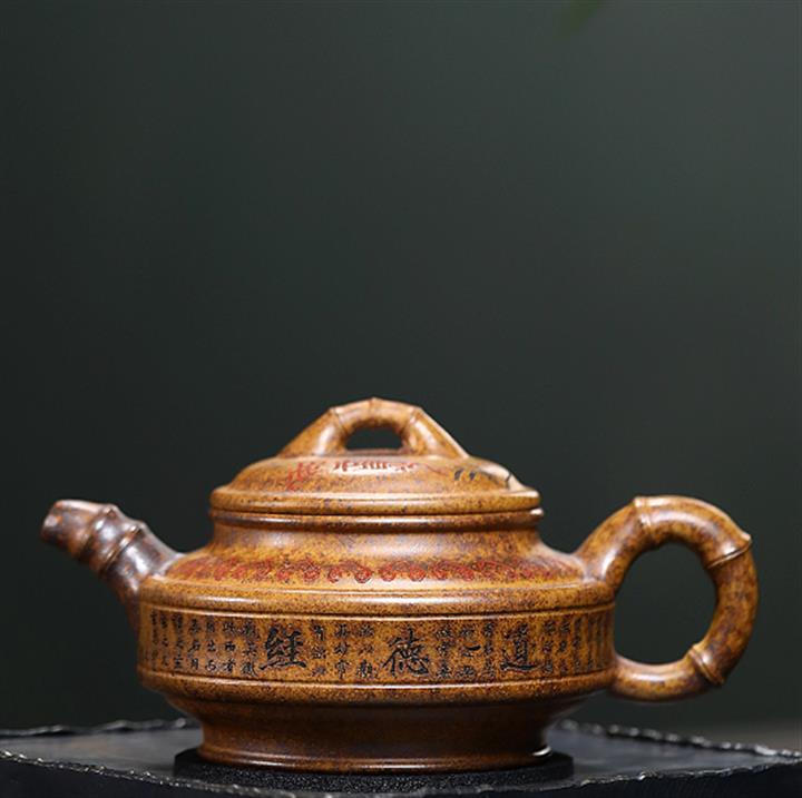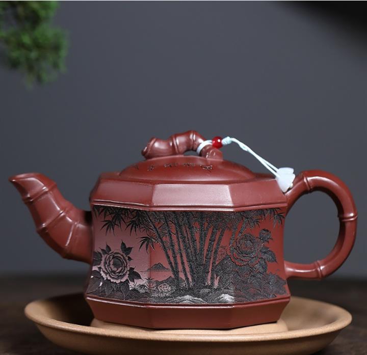 400cc原礦龍血砂八方滿刻竹段泡茶壺POT10113