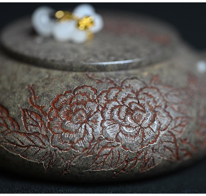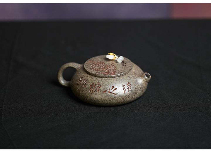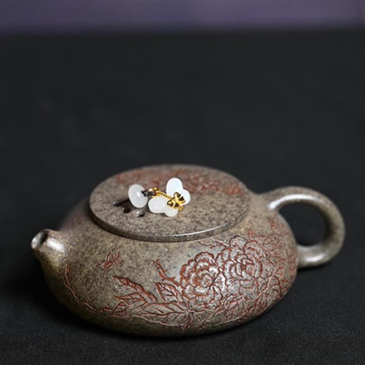 原礦開花泥純手工平蓋石瓢茶壺POT7432