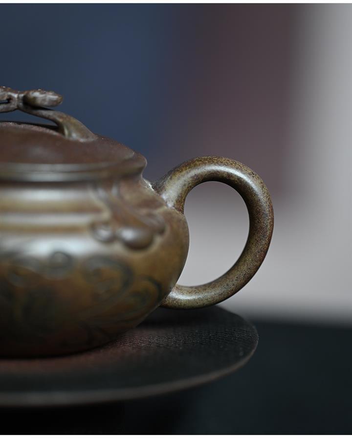 原礦紅皮龍刻竹漢瓦紫砂壺POT5455