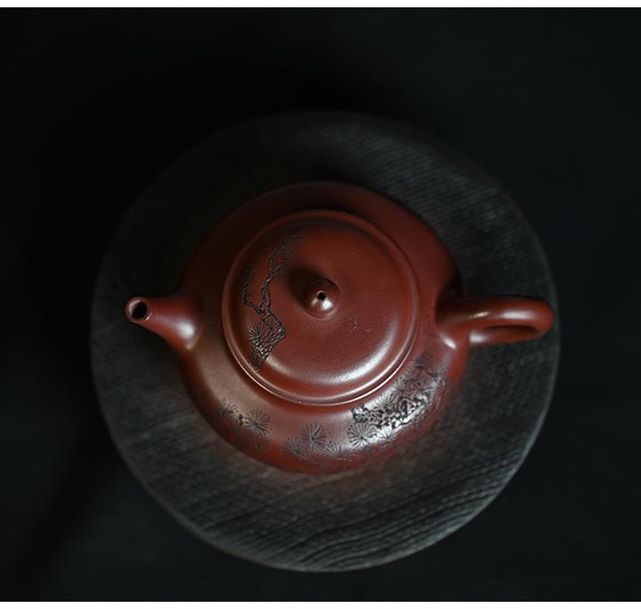 原礦龍血砂水平壺刻繪茶壺POT7440
