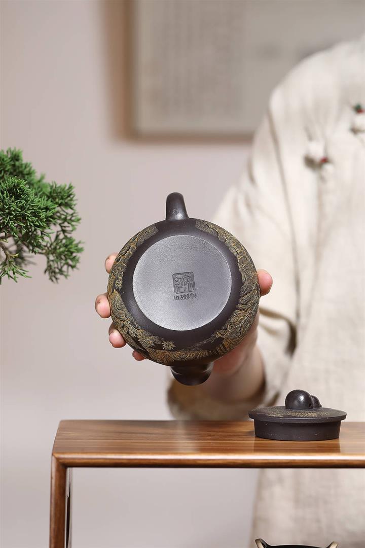 原礦陳腐本山綠泥厚德載物巨輪紫砂壺POT4867