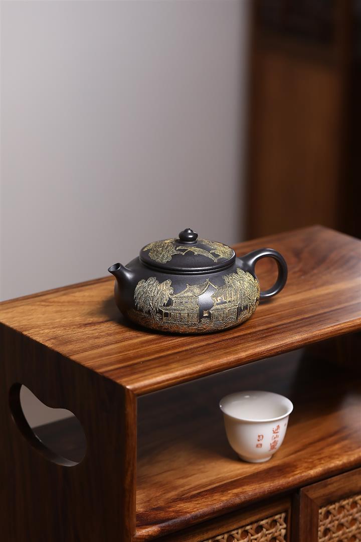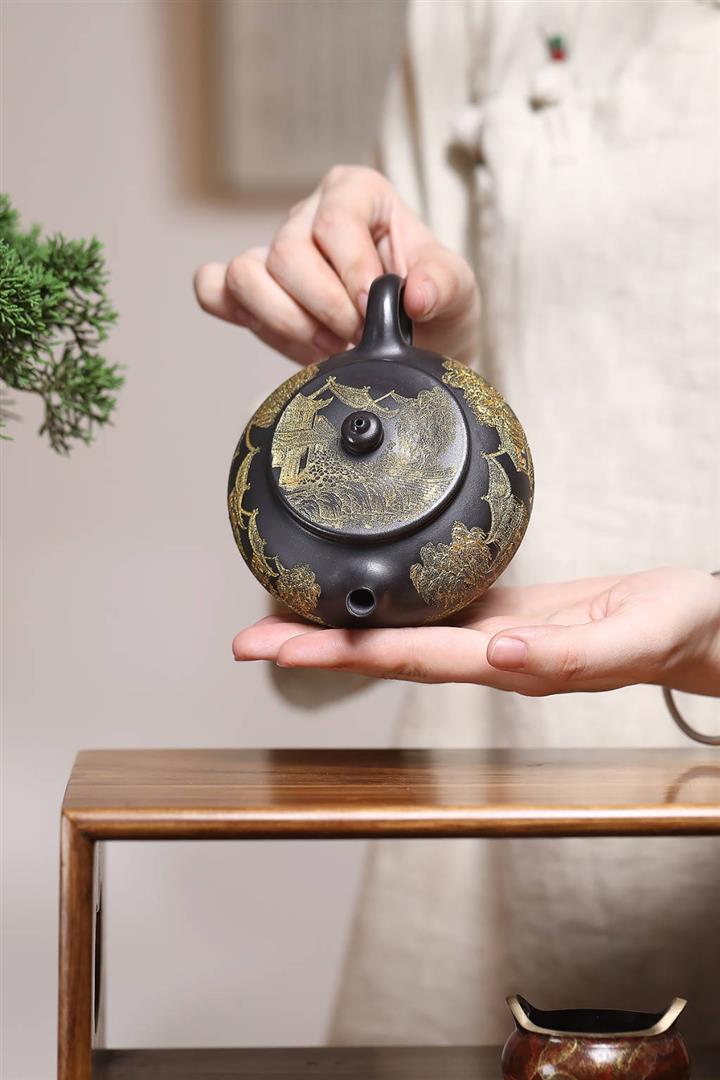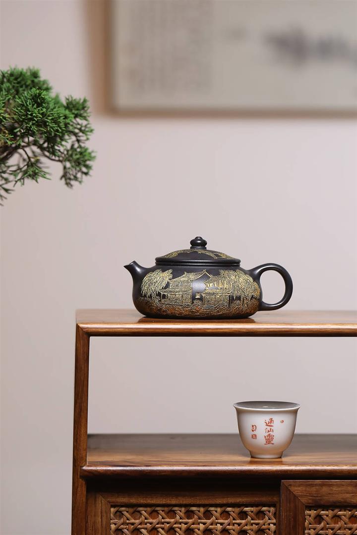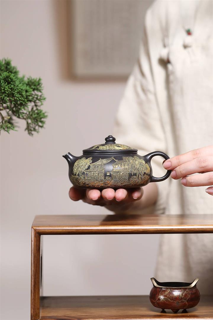 【介紹】此款壺形線條流暢,壺把,壺嘴,壺身壹氣呵成栩栩如生,是收藏把玩的好壺,泥料色澤古樸典雅,日久使用,漸露鋒芒,養成變化快,溫潤莊重,用其泡茶,使用的年代久,壺身就溫潤,泡出來的茶湯也就醇郁芳馨。