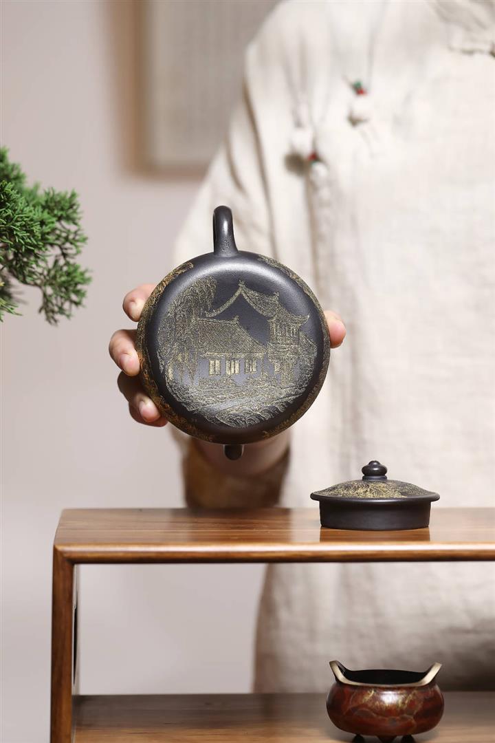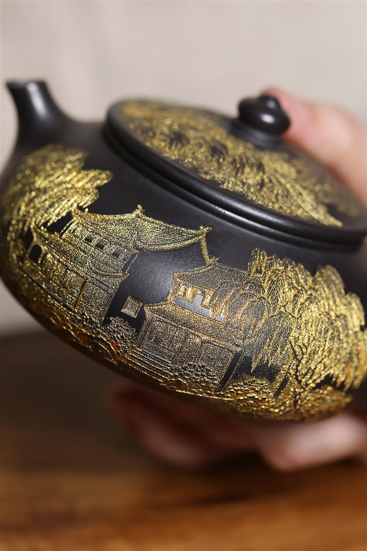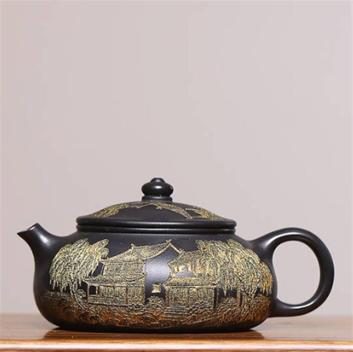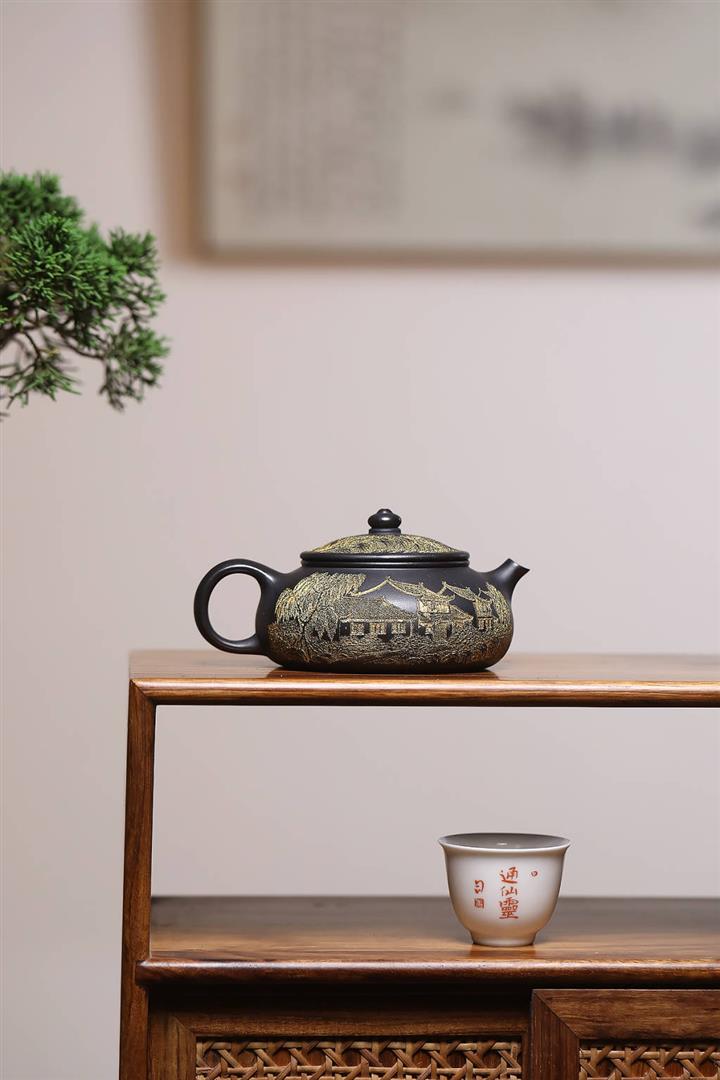盤龍竹段原礦石黃黑料手刻紫砂壺工堂源頭禮品茶具壺pot3779