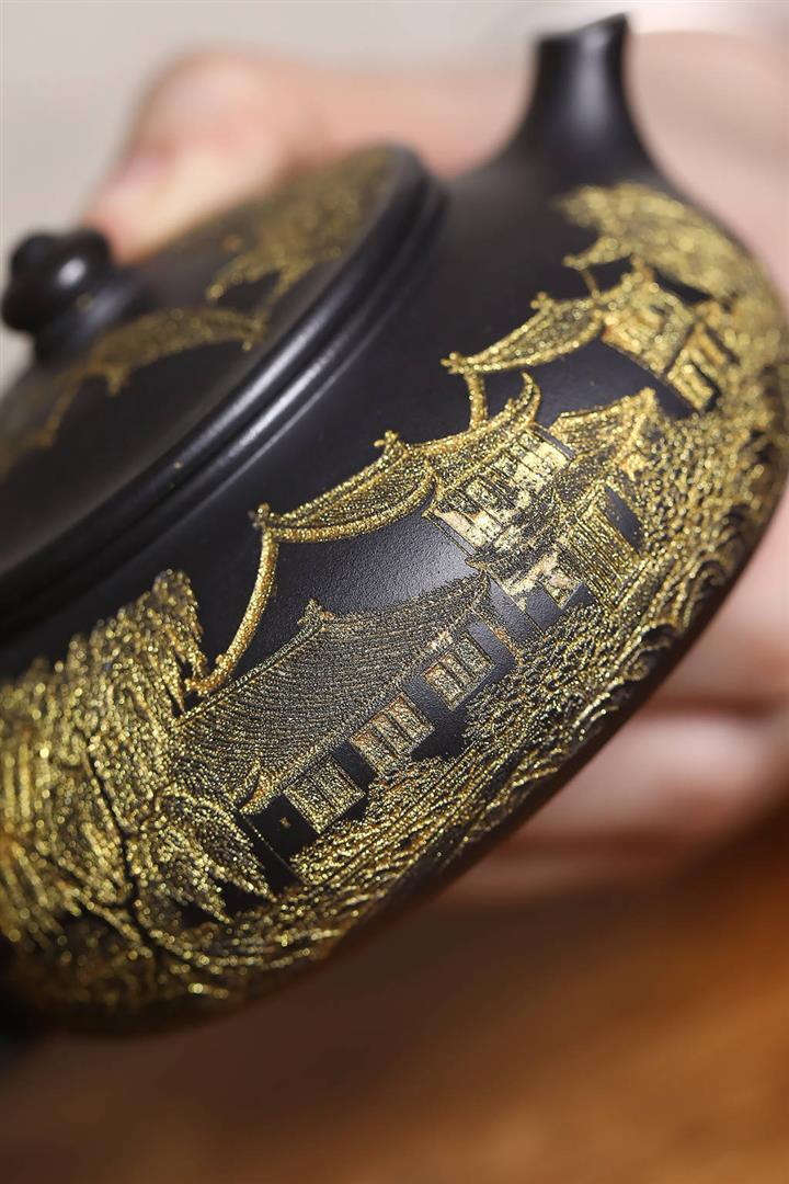 吉祥如意原礦石黃料紫砂家用禮品茶壺茶具pot3723