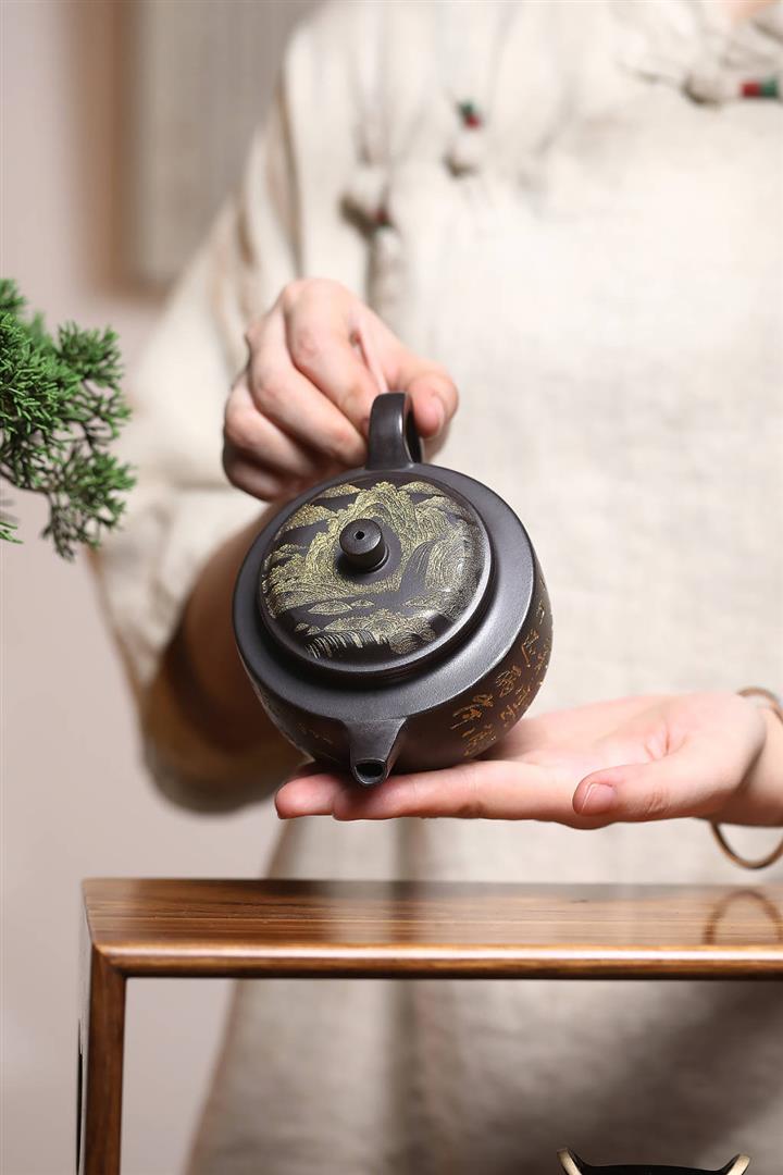 150cc原礦紫玉金砂蓮華茶壺POT8716