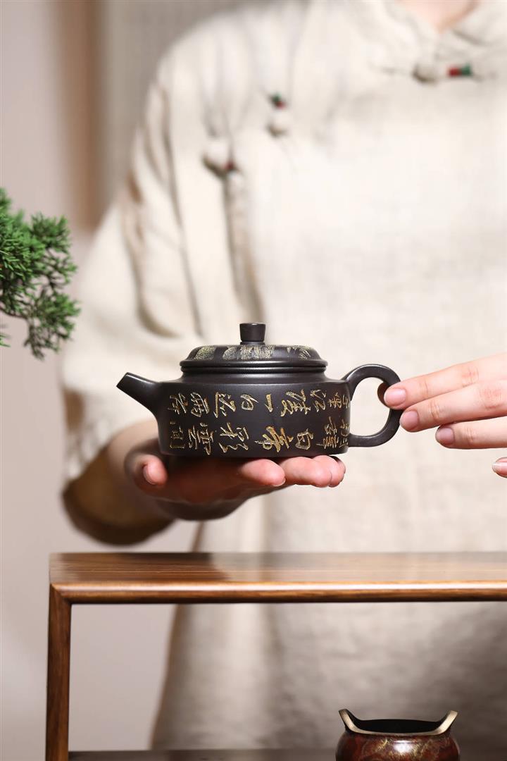 【介紹】此款壺形線條流暢,壺把,壺嘴,壺身壹氣呵成栩栩如生,是收藏把玩的好壺,泥料色澤古樸典雅,日久使用,漸露鋒芒,養成變化快,溫潤莊重,用其泡茶,使用的年代久,壺身就溫潤,泡出來的茶湯也就醇郁芳馨。