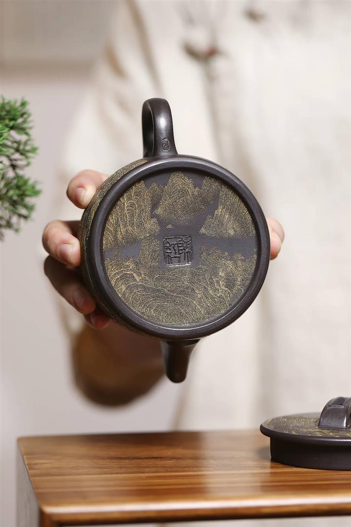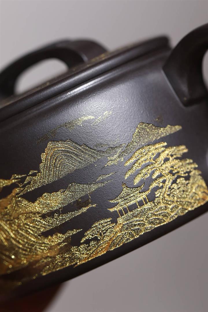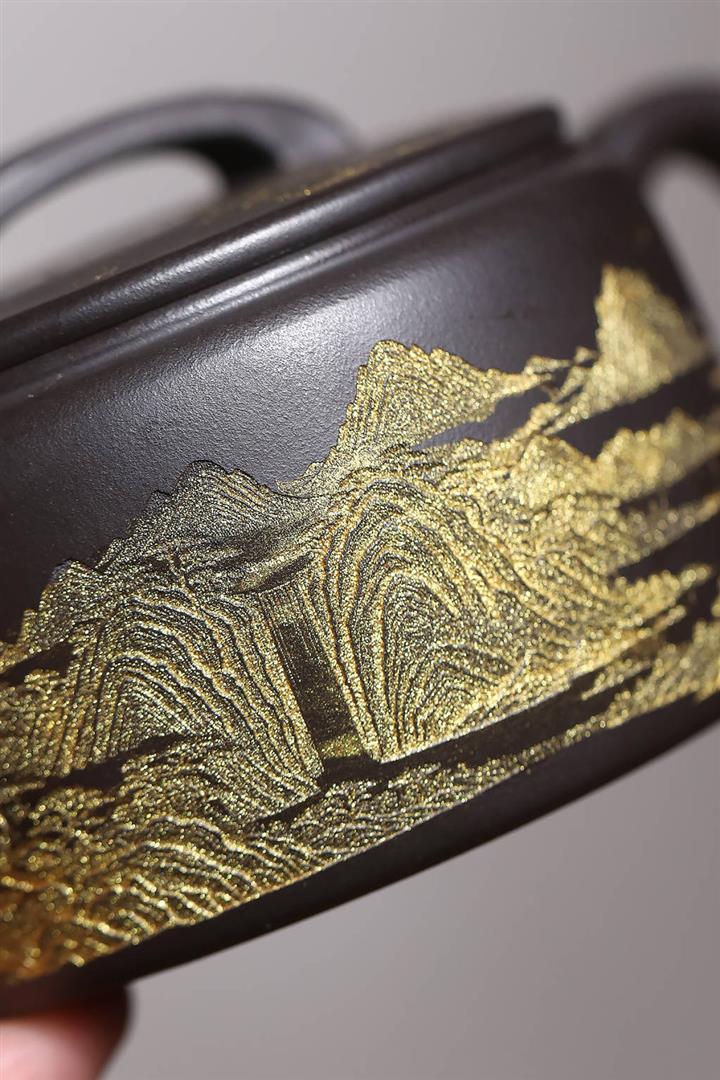 400cc原礦綠泥貝克燒金砂桃源秦權茶壺POT8474