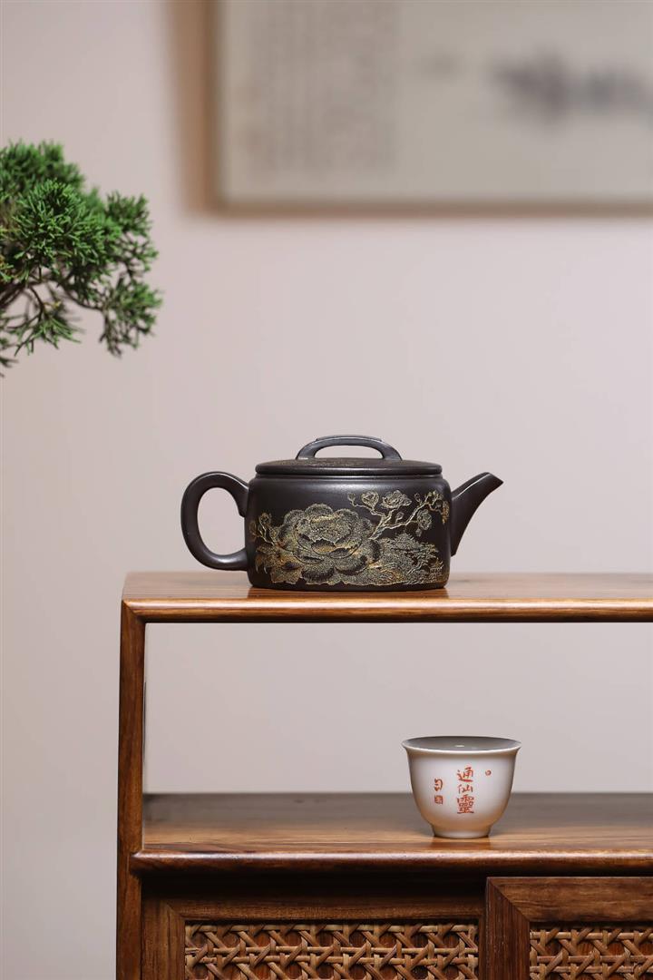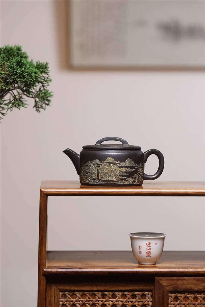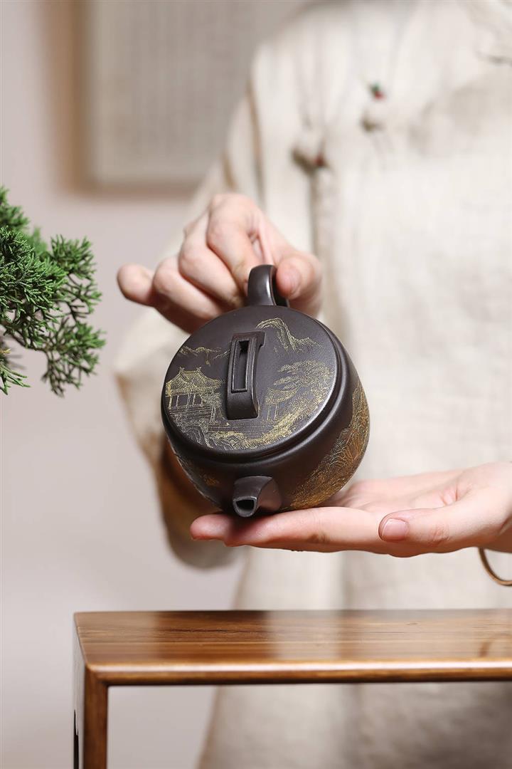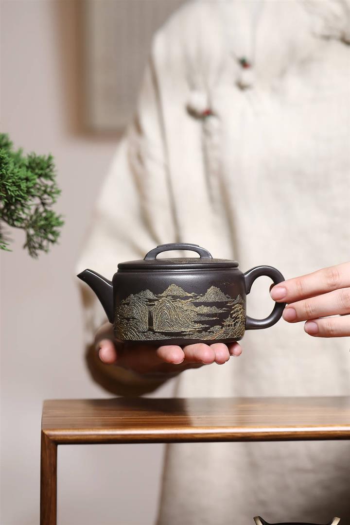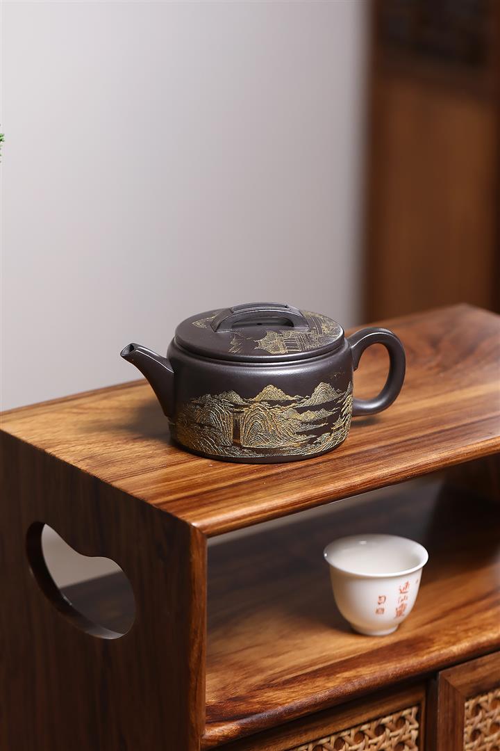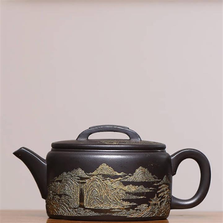 200cc原礦紫朱泥描金漢瓦茶壺POT8468