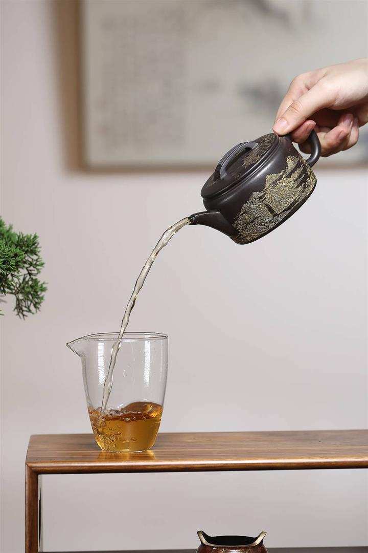 【介紹】此款壺形線條流暢,壺把,壺嘴,壺身壹氣呵成栩栩如生,是收藏把玩的好壺,泥料色澤古樸典雅,日久使用,漸露鋒芒,養成變化快,溫潤莊重,用其泡茶,使用的年代久,壺身就溫潤,泡出來的茶湯也就醇郁芳馨。