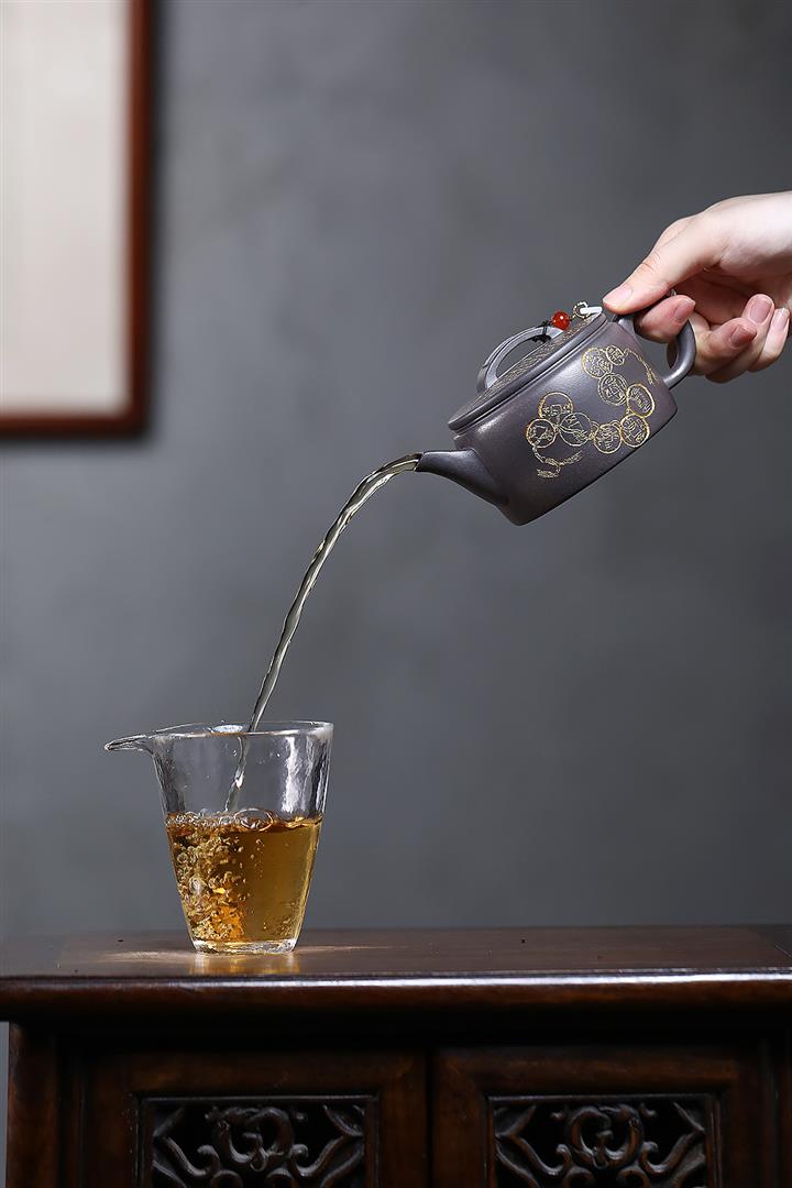 紫砂使用越久,壺身色澤越發光亮照人,氣韻溫雅。紫砂壺長久使用器身會因撫摸擦拭,變得越發溫潤光澤!
