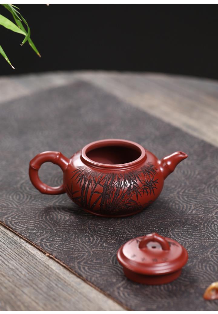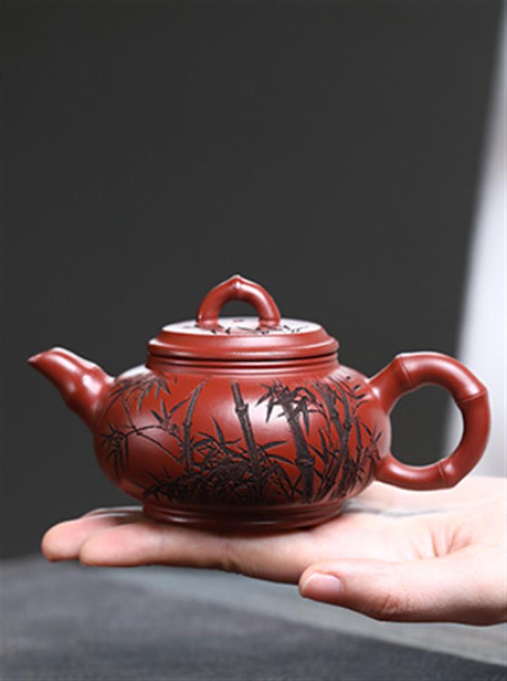原礦大紅袍竹節水平茶壺POT7484