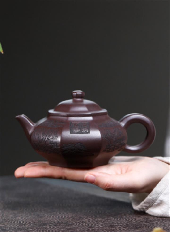 紫砂使用越久,壺身色澤越發光亮照人,氣韻溫雅。紫砂壺長久使用器身會因撫摸擦拭,變得越發溫潤光澤!