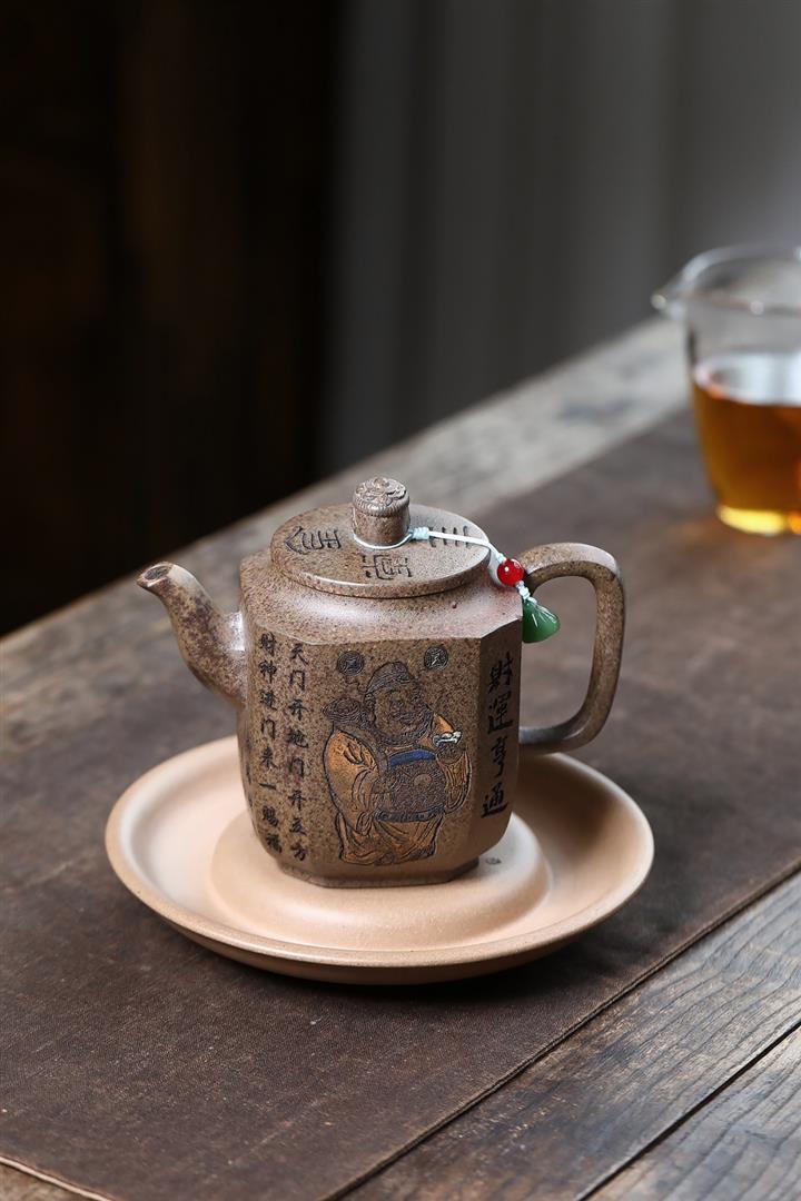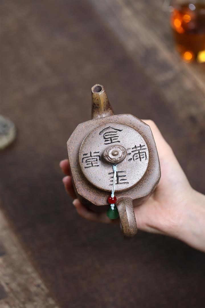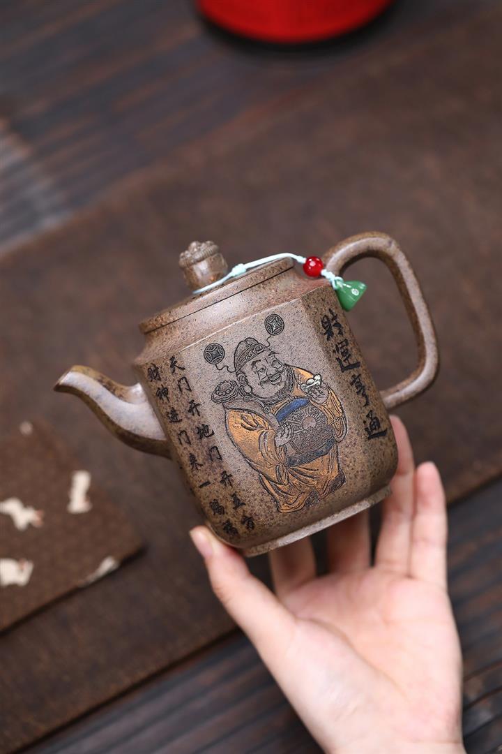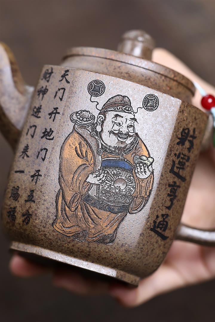 原礦柴燒沈香泥財運亨通四方茶壺POT7488