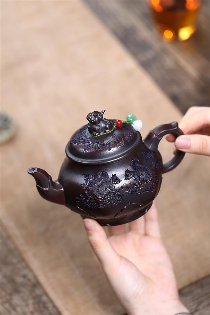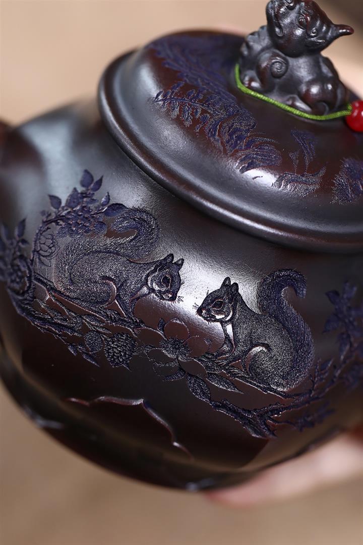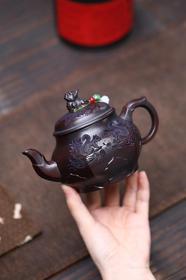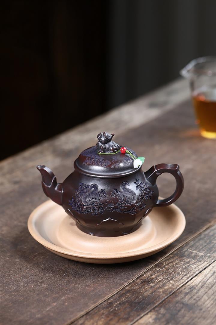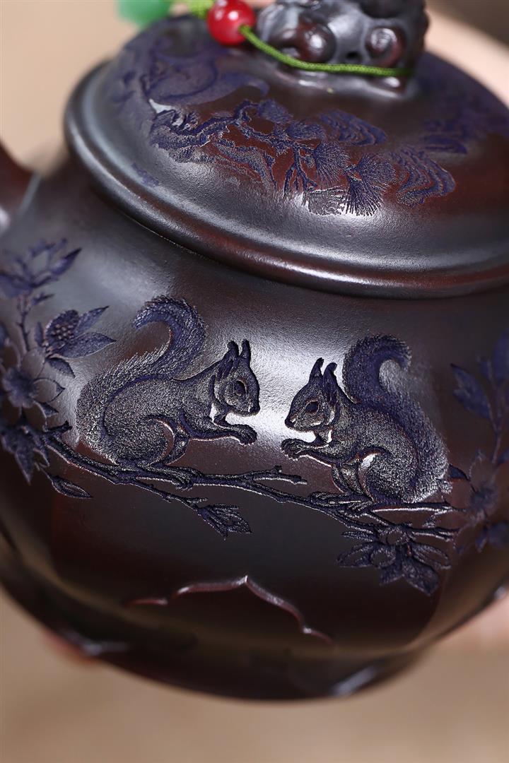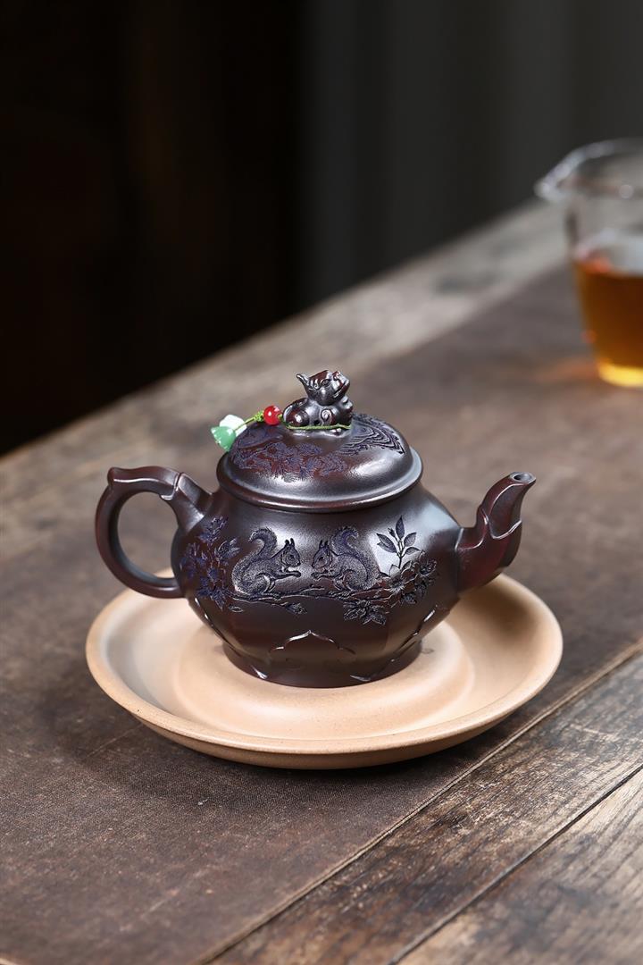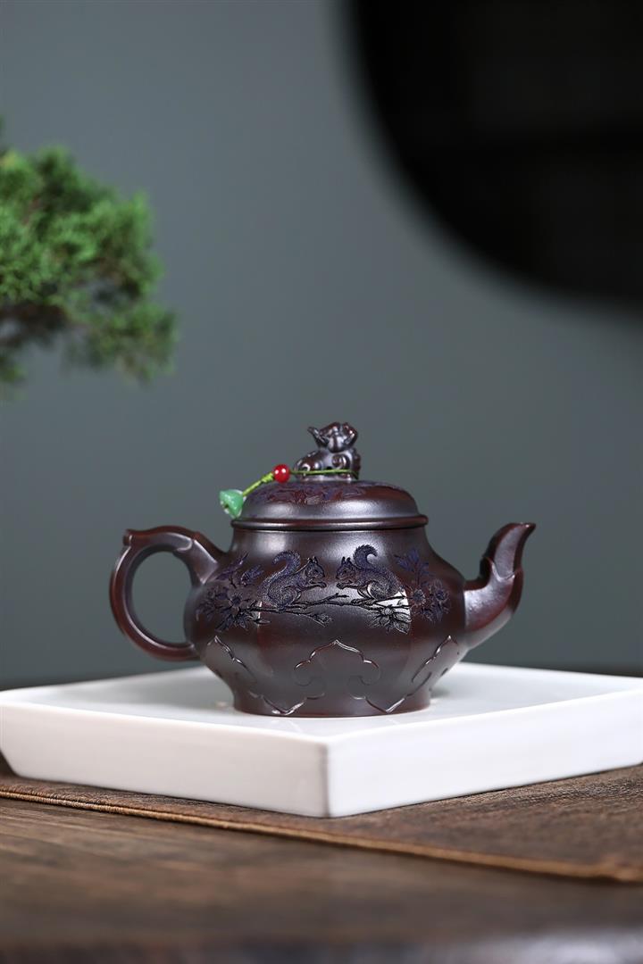 原礦紫泥松鼠葡萄紫砂壺POT5135