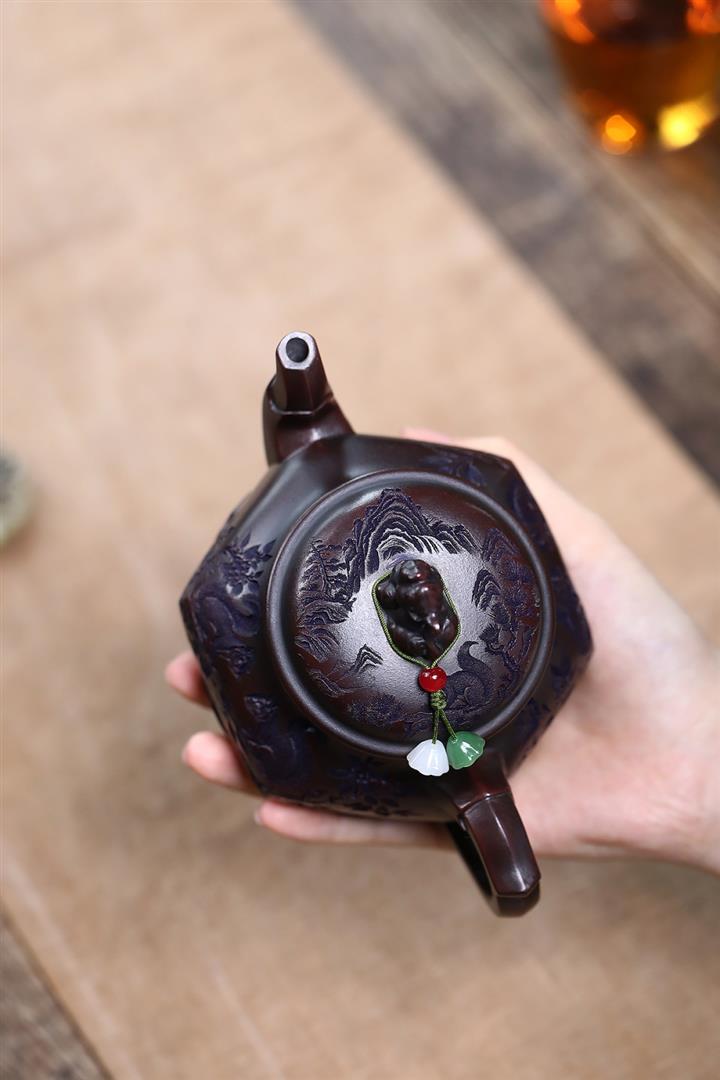 紫砂使用越久,壺身色澤越發光亮照人,氣韻溫雅。紫砂壺長久使用器身會因撫摸擦拭,變得越發溫潤光澤!