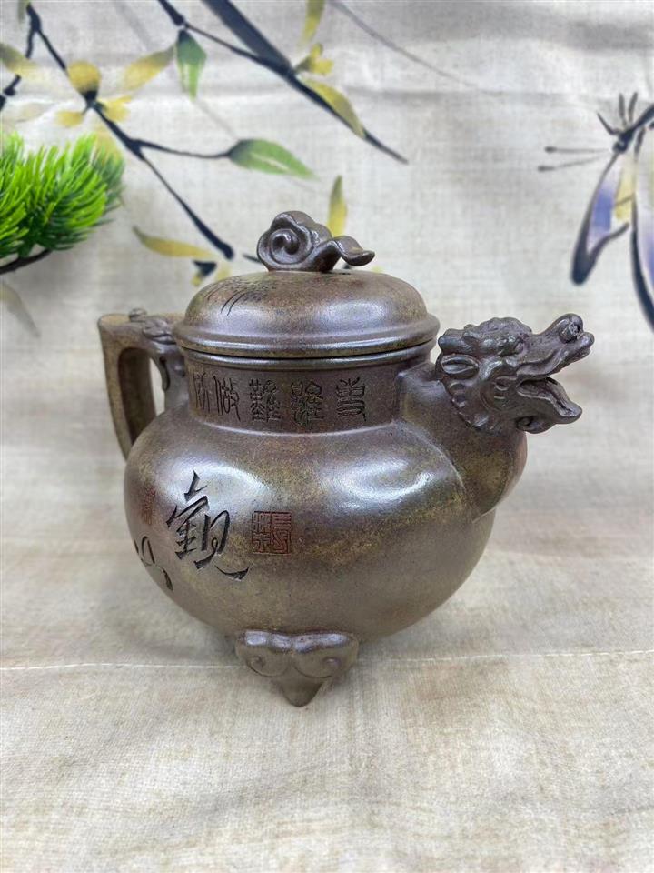 原礦古法沈香泥三足祥龍茶壺POT7507