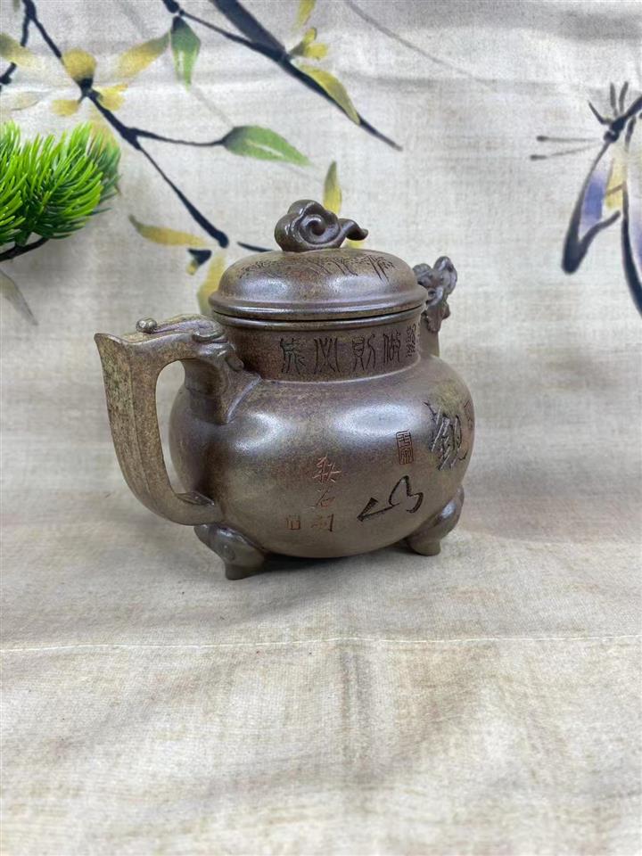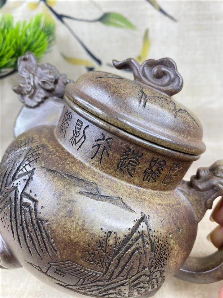 200cc原礦紫泥金刻漢瓦茶壺POT8098