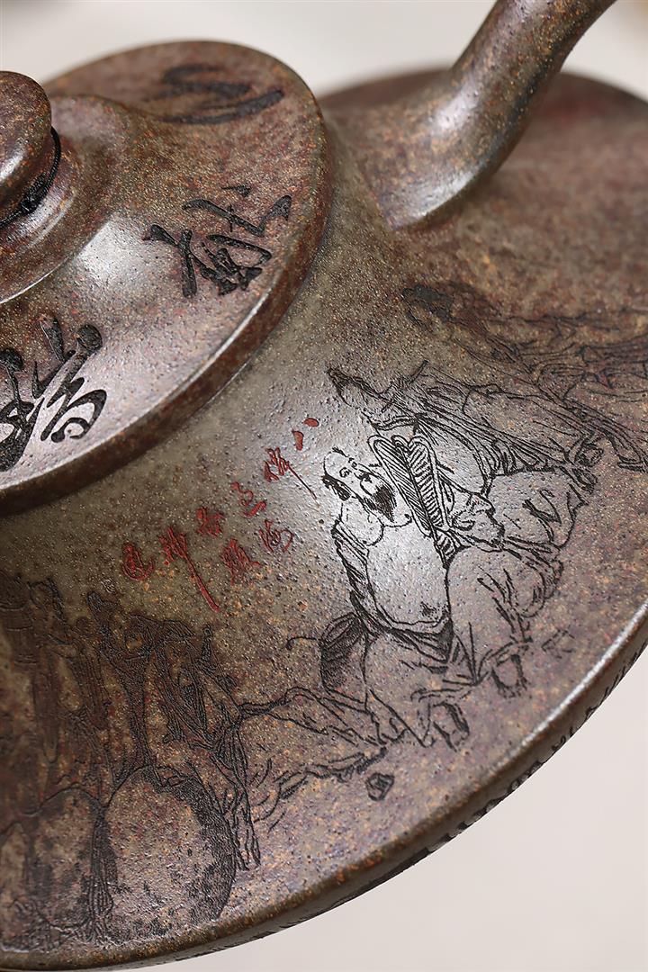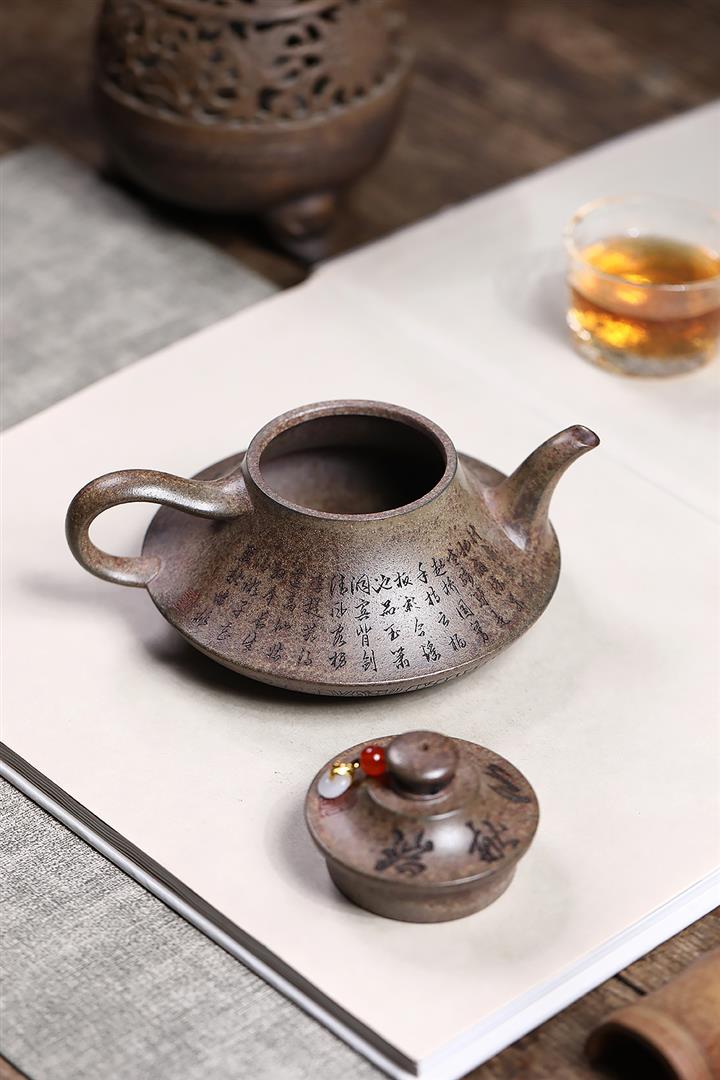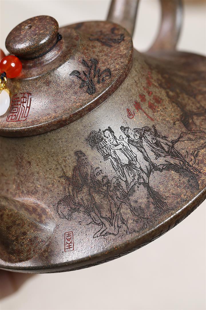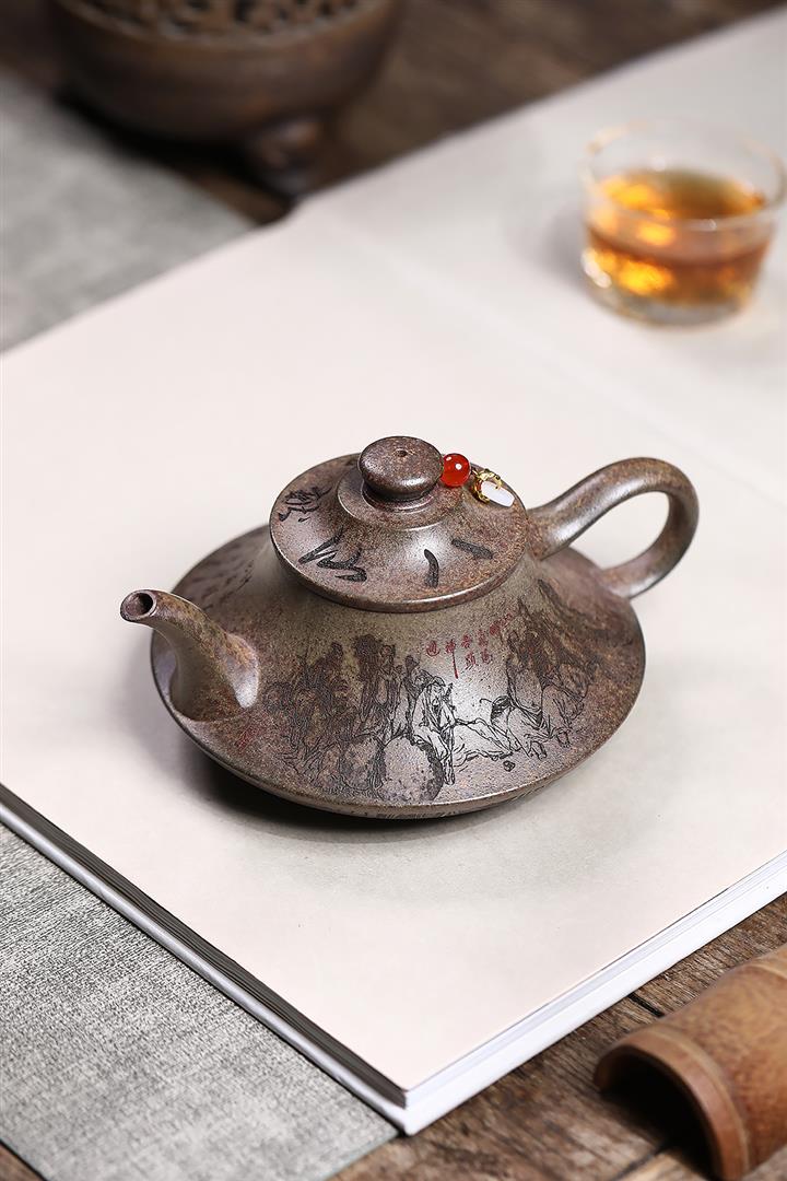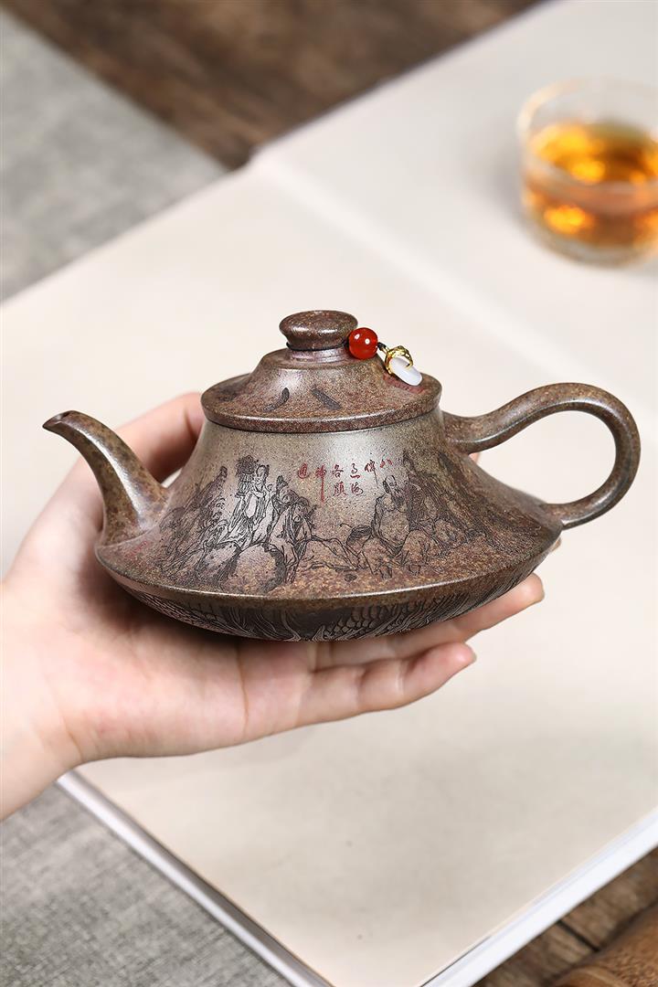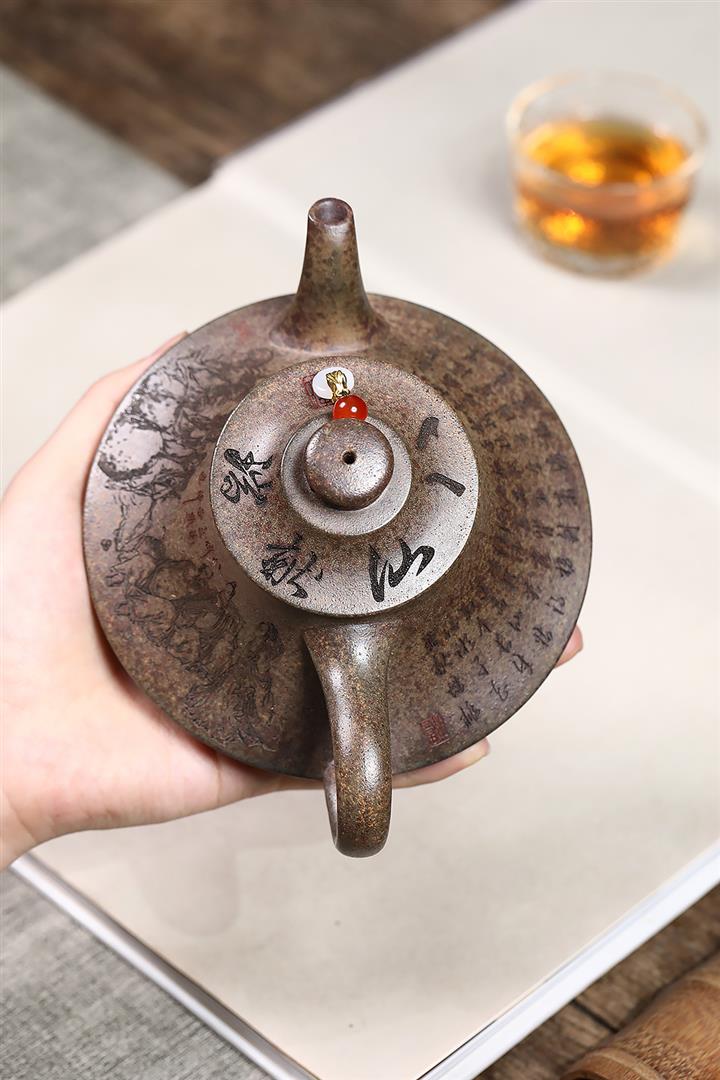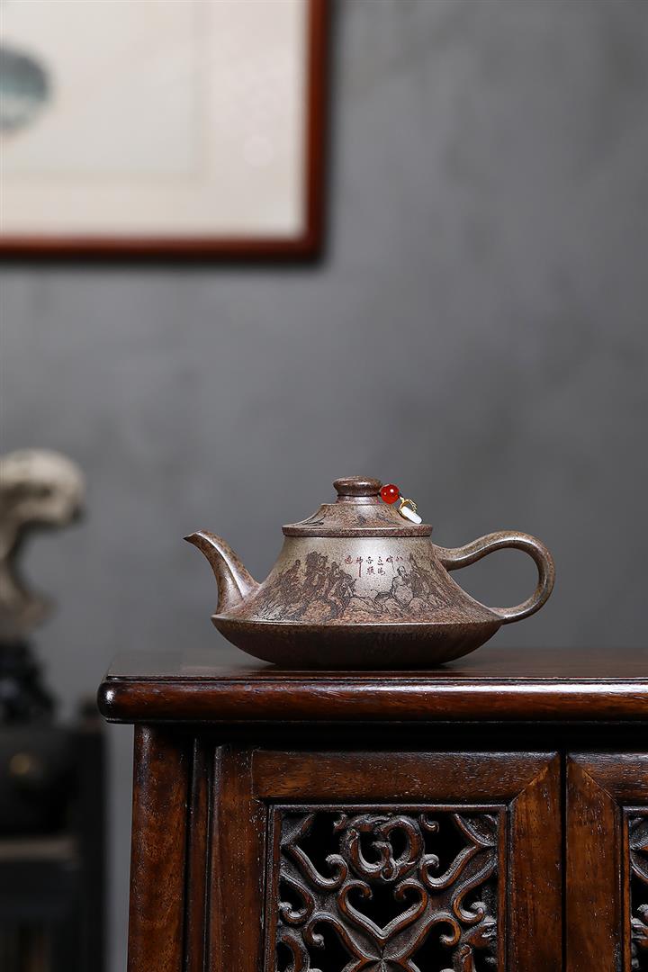 365cc原礦紫泥刻繪山水仿古茶壺POT8580