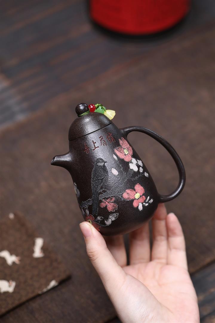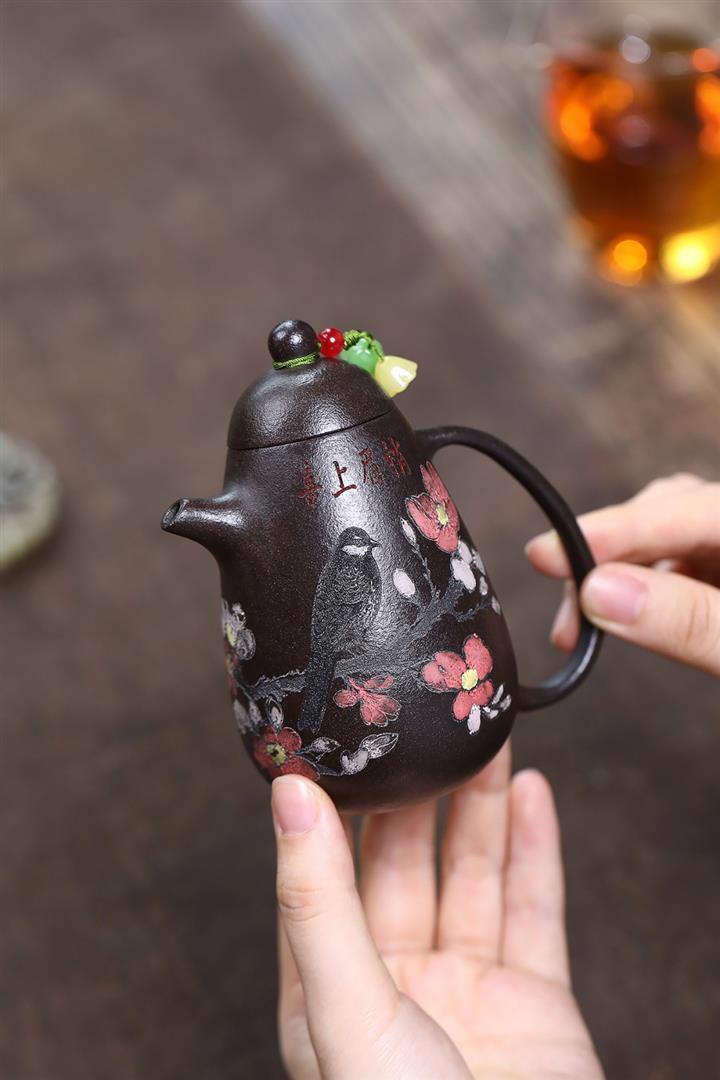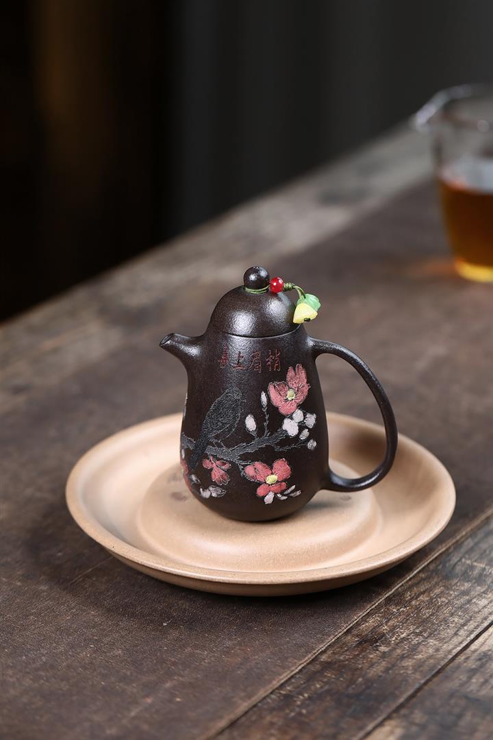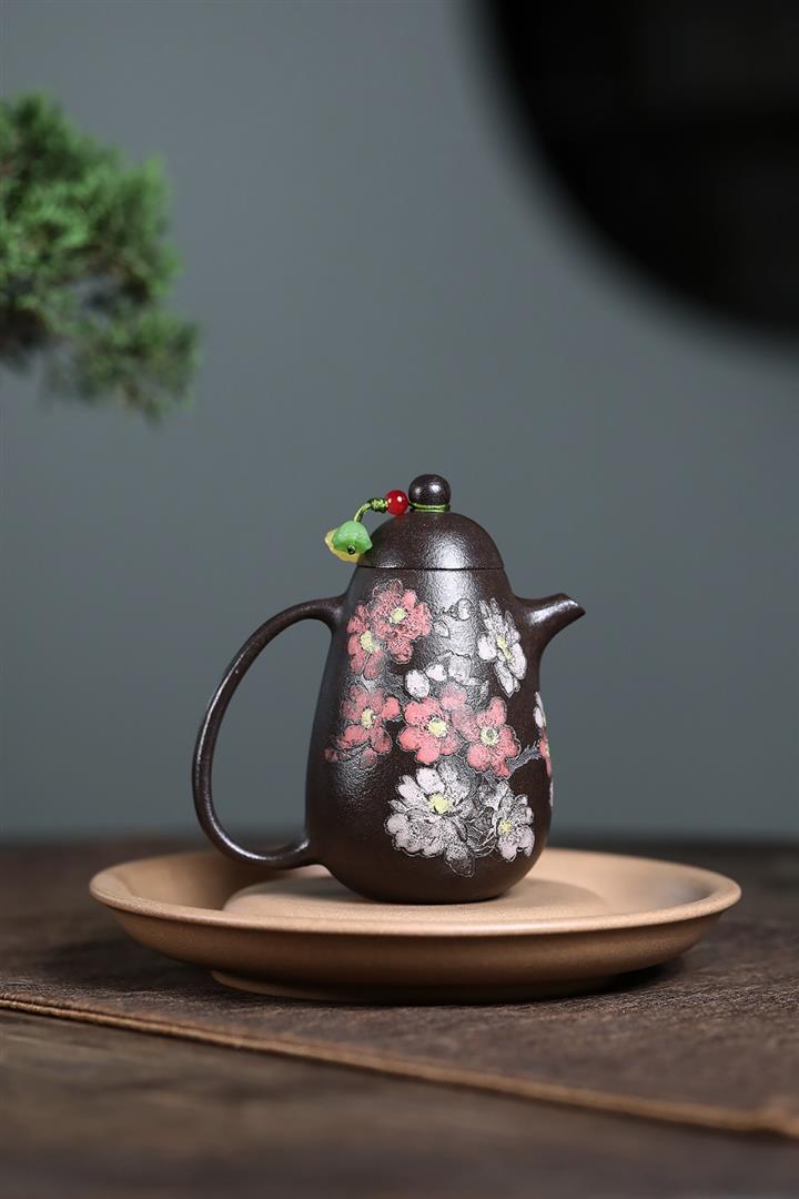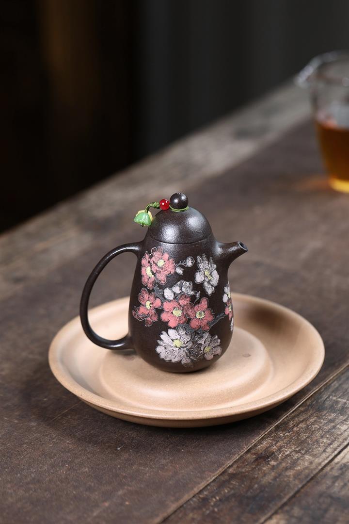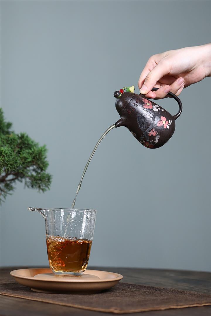 紫砂使用越久,壺身色澤越發光亮照人,氣韻溫雅。紫砂壺長久使用器身會因撫摸擦拭,變得越發溫潤光澤!