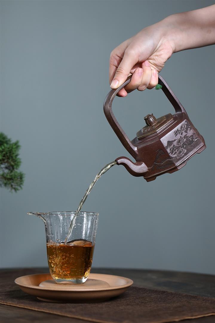 紫砂使用越久,壺身色澤越發光亮照人,氣韻溫雅。紫砂壺長久使用器身會因撫摸擦拭,變得越發溫潤光澤!