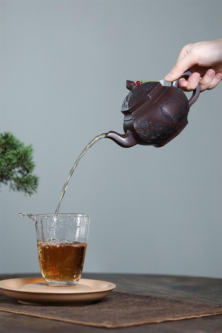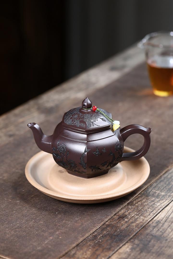 紫砂使用越久,壺身色澤越發光亮照人,氣韻溫雅。紫砂壺長久使用器身會因撫摸擦拭,變得越發溫潤光澤!