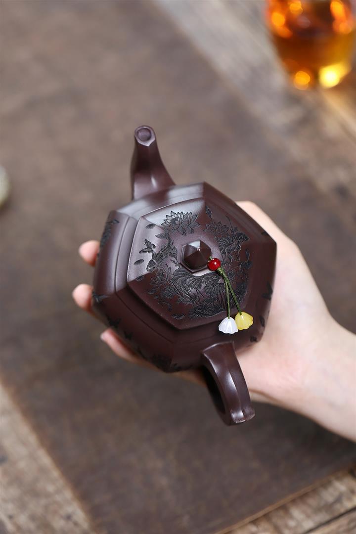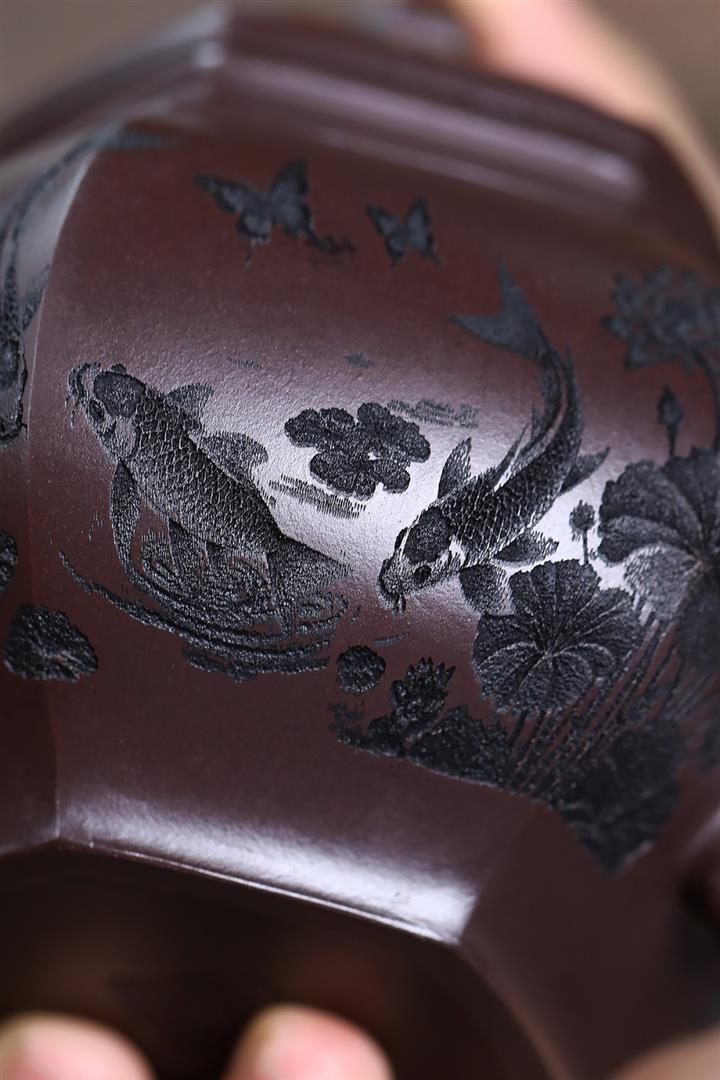 原礦赤龍血砂魚趣六方宮燈茶壺POT7555
