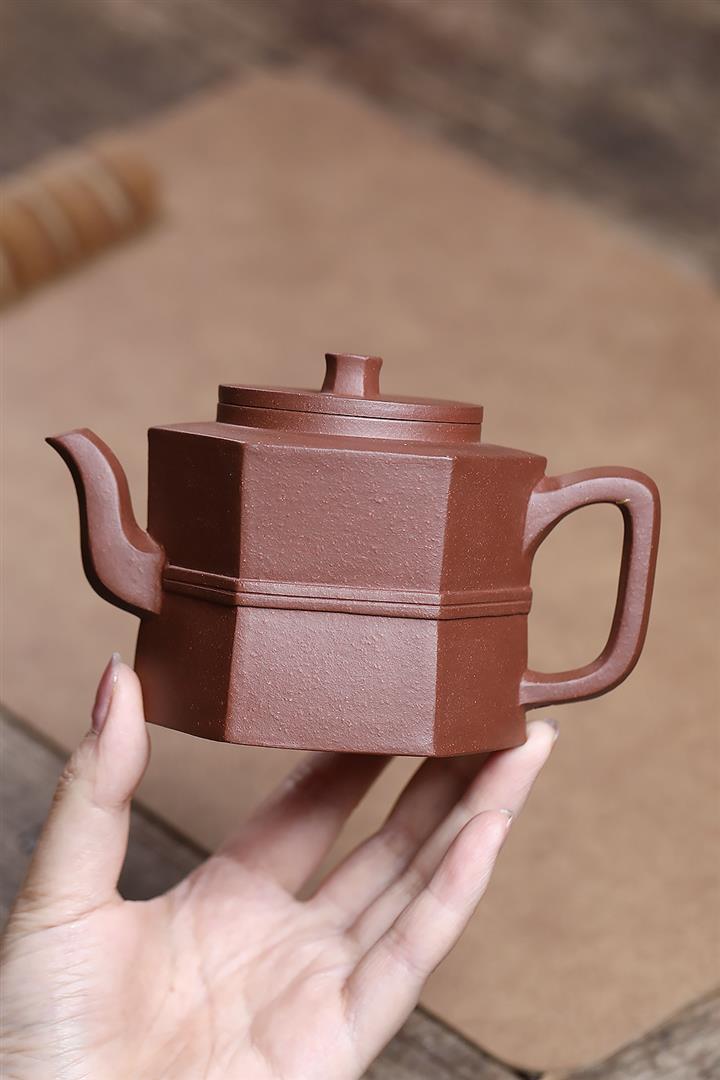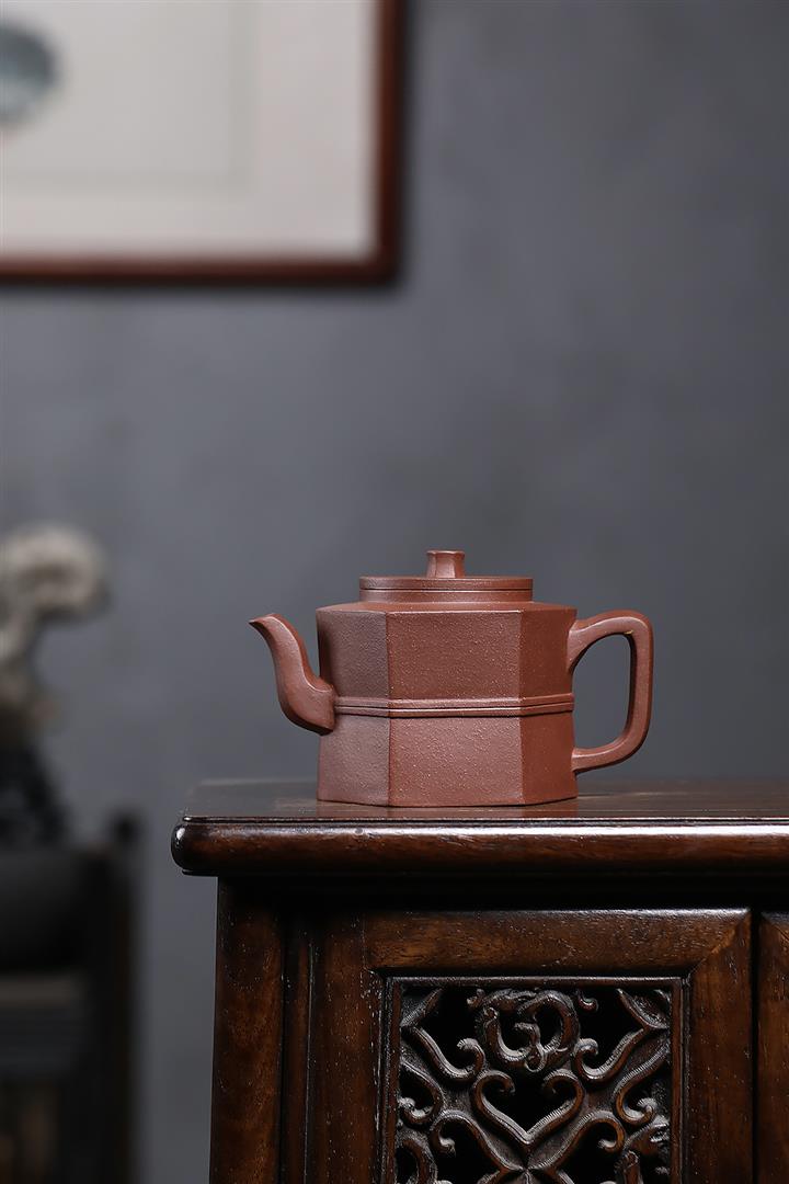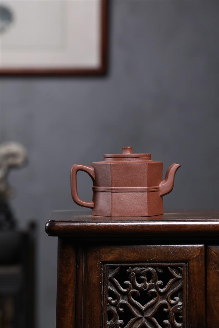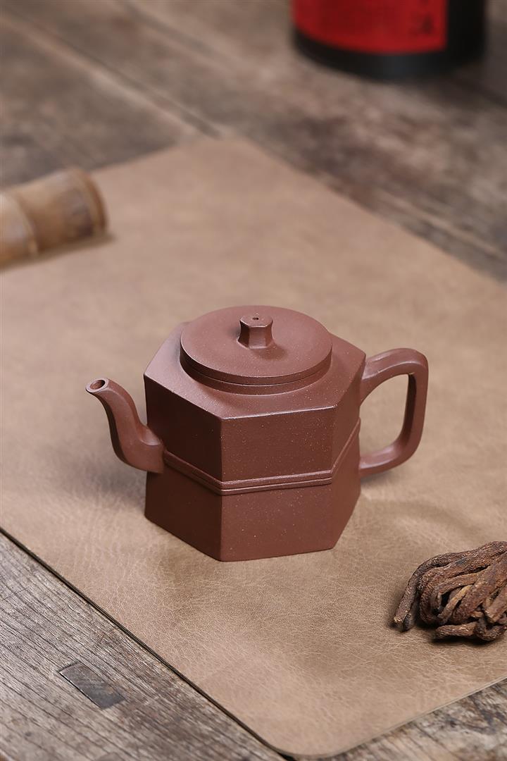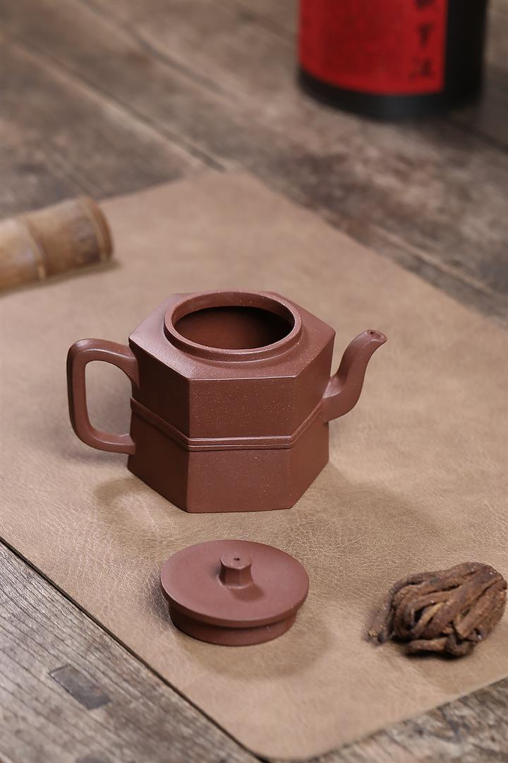 原礦紫泥光素六方井欄茶壺POT7574