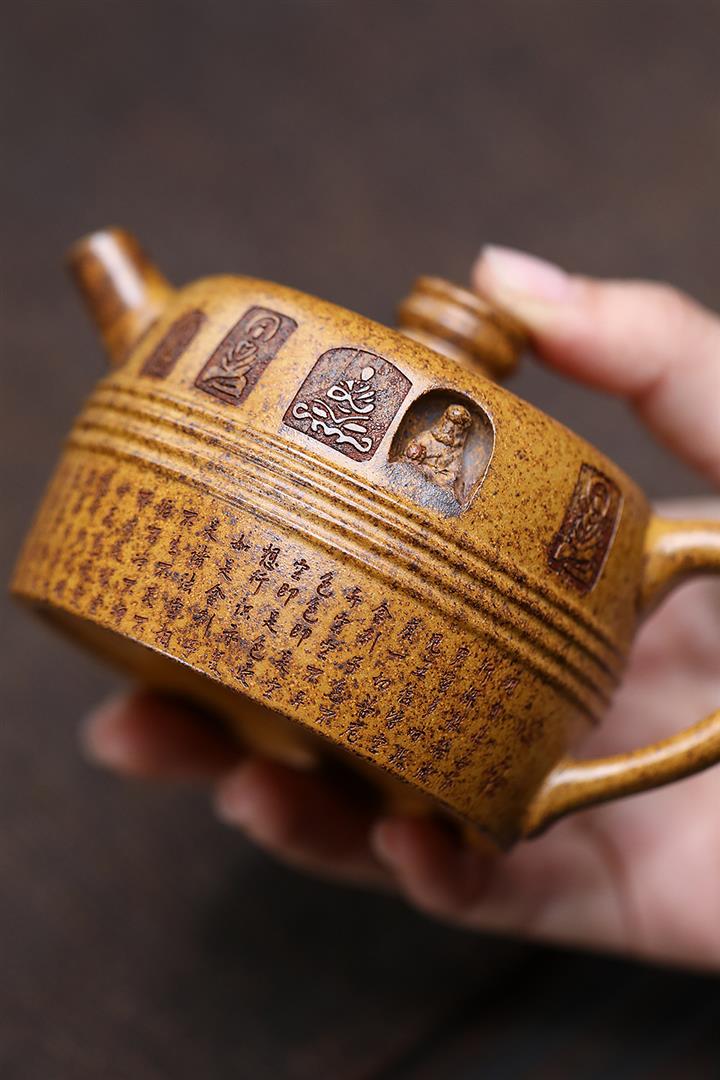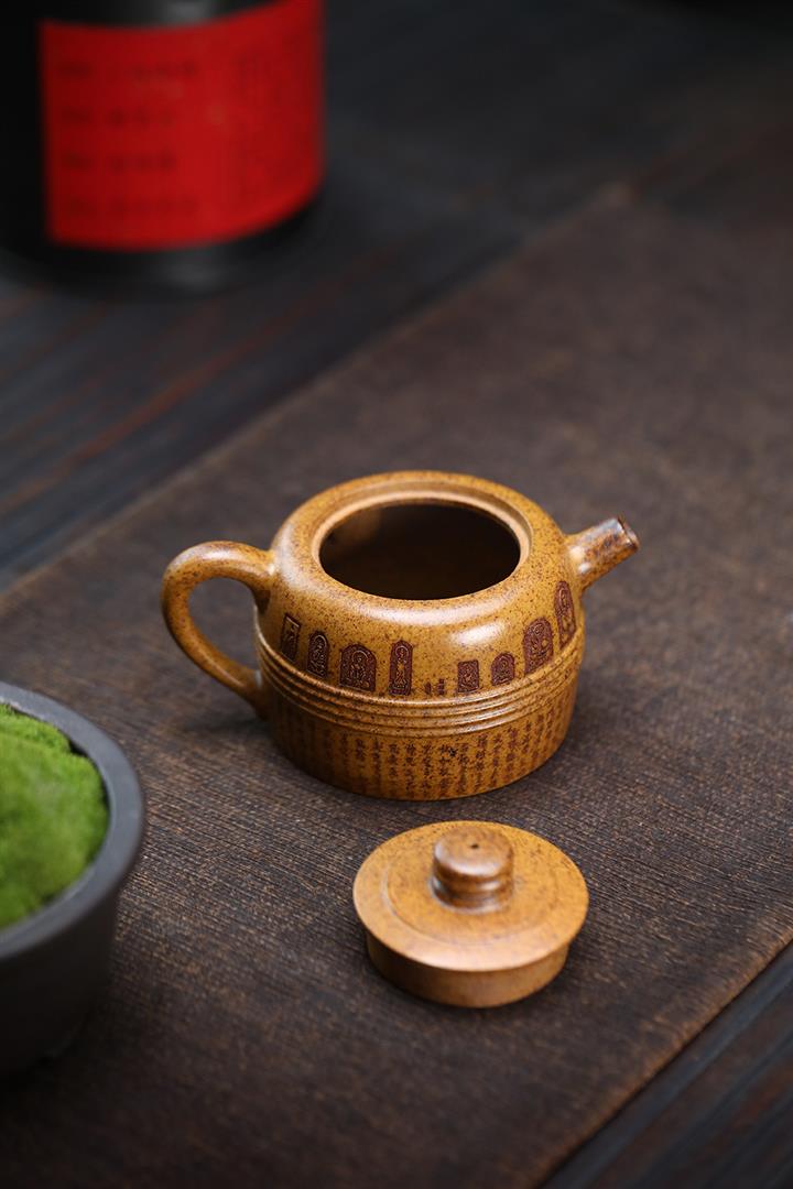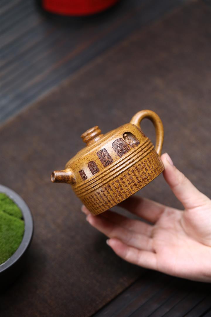 450cc原礦紫泥貝殼燒滿刻秦權茶壺POT8214