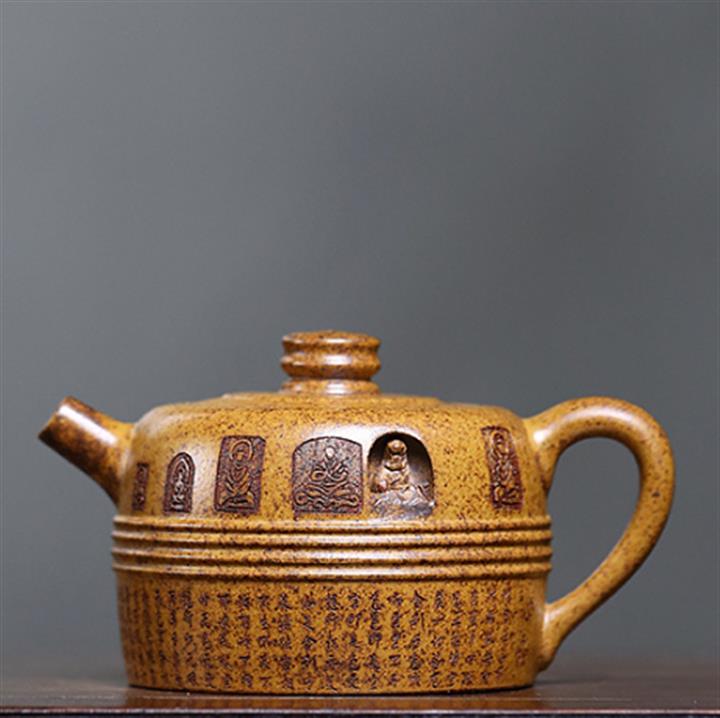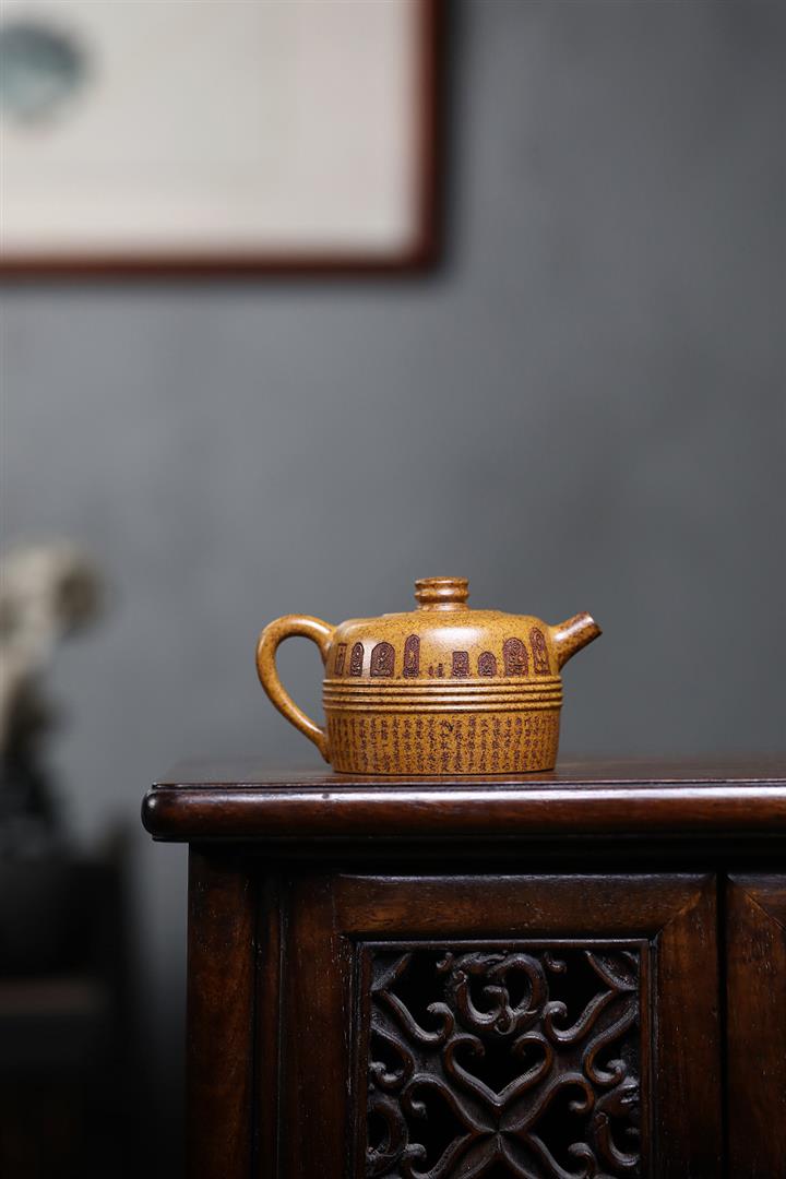 220cc玄鐵石黃黑料線瓢館藏茶壺POT8205
