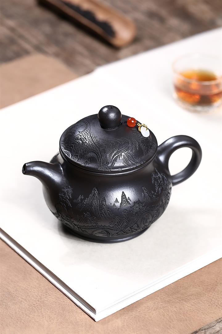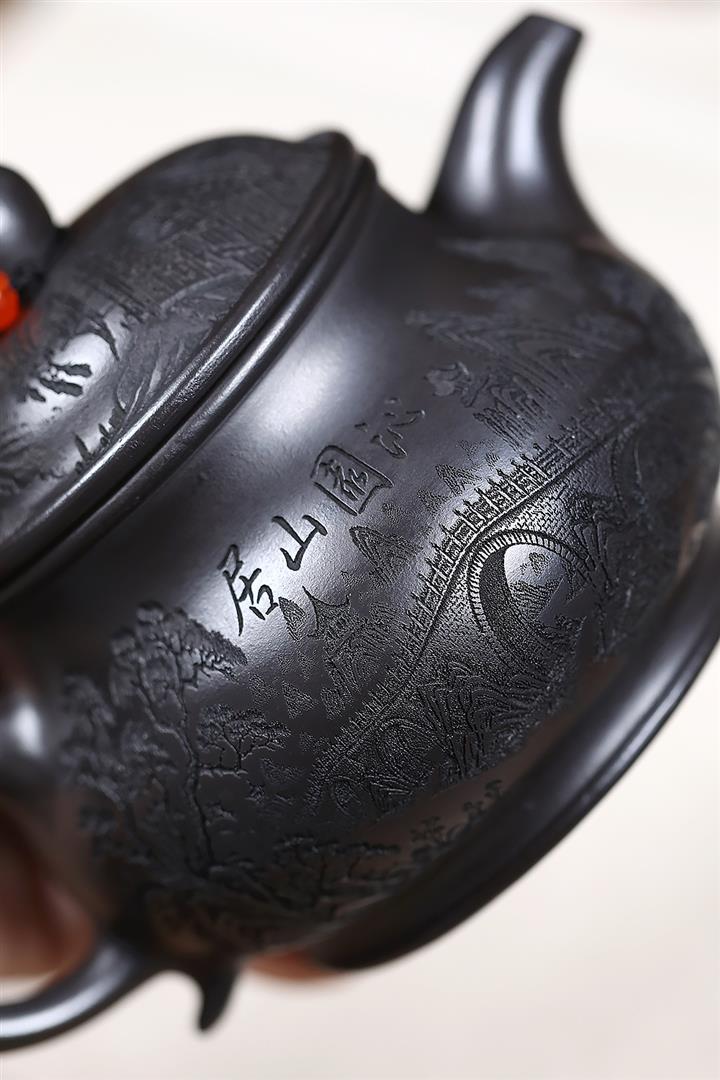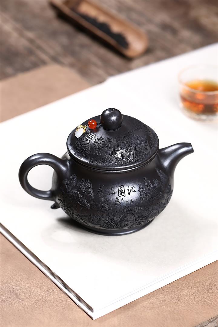 家藏黃金朱泥純手工童趣茶壺POT7328