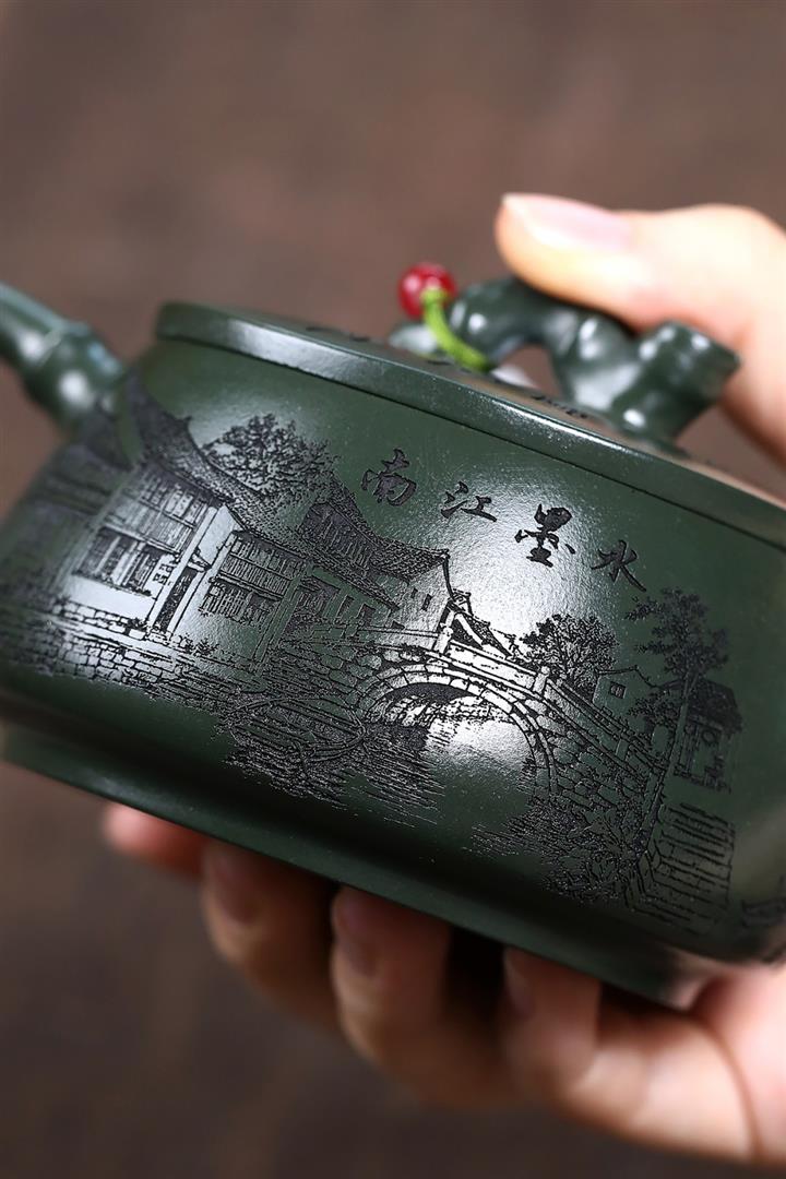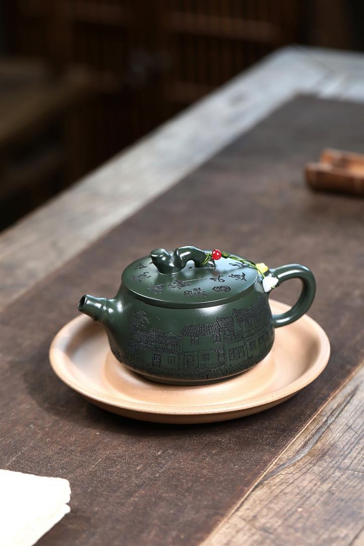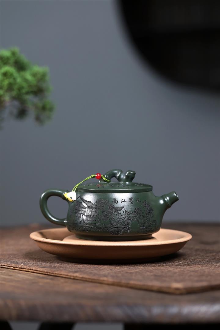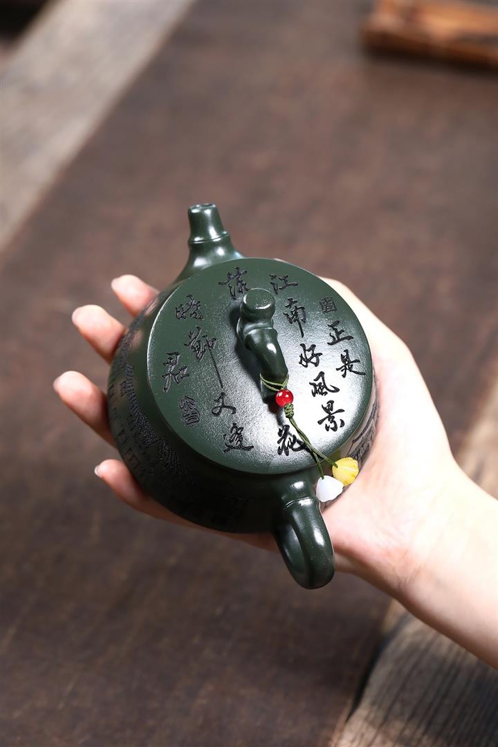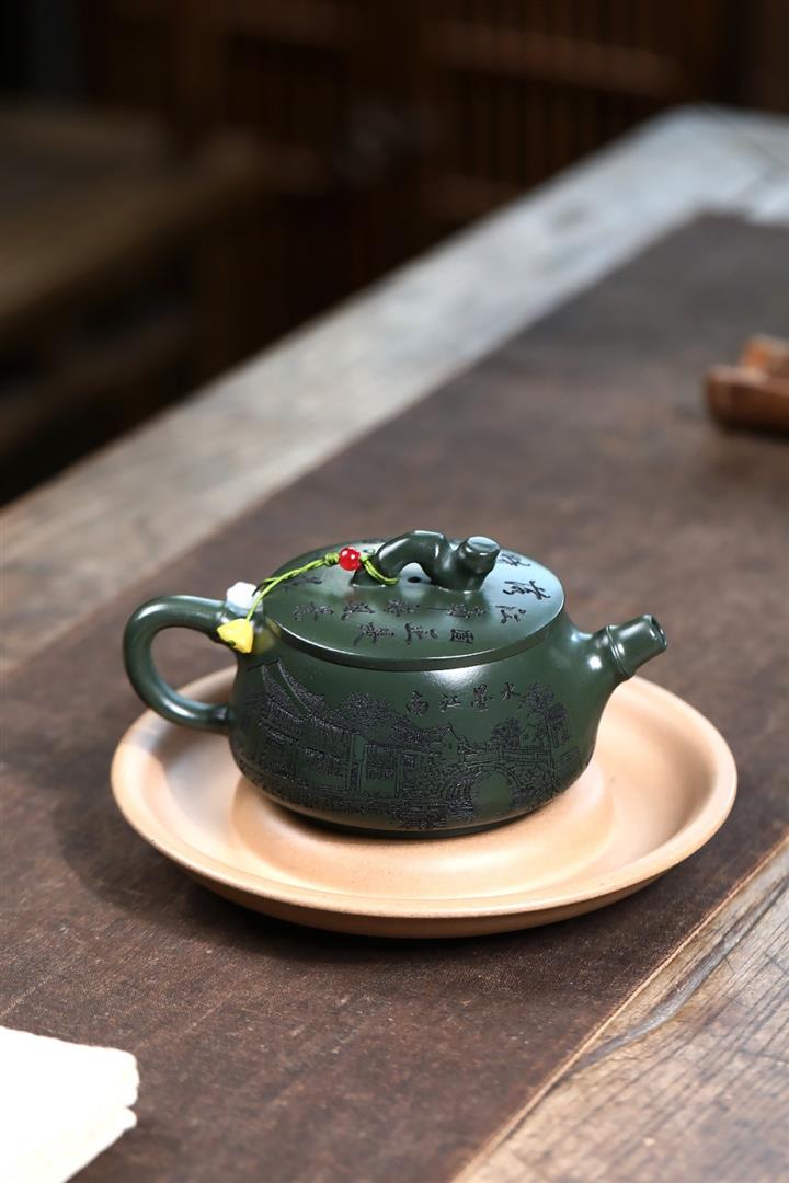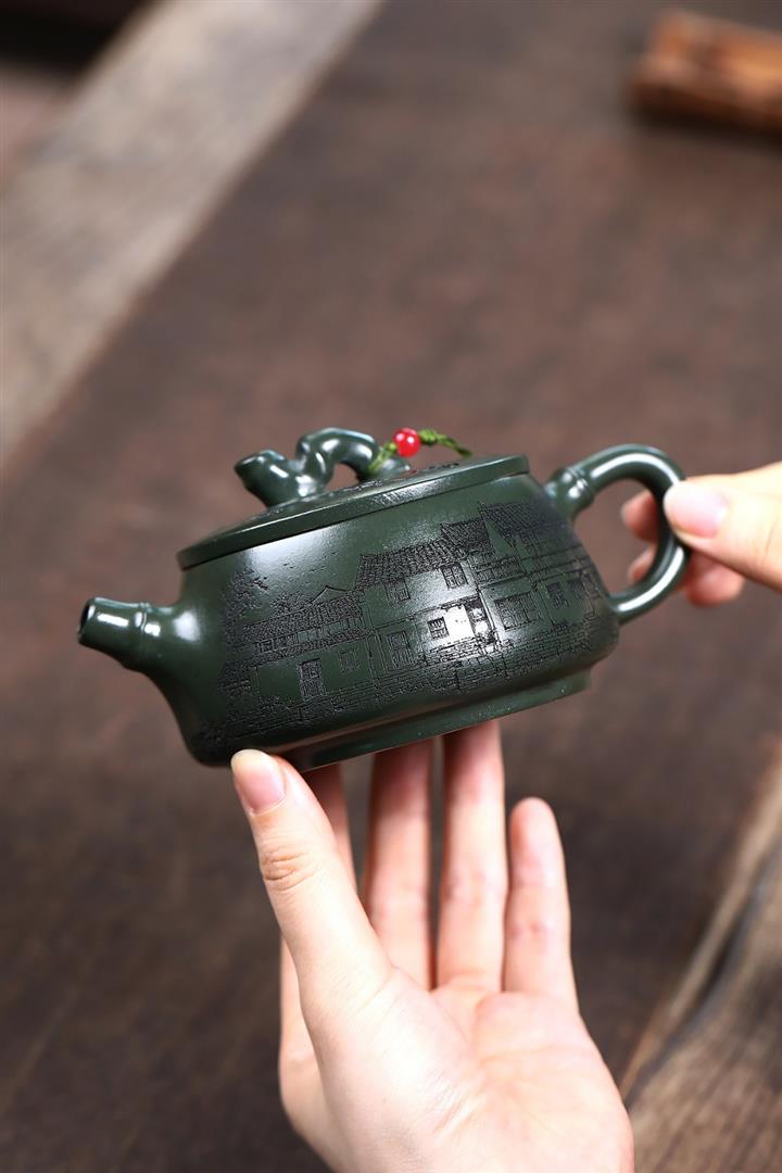 原礦墨綠泥水墨江南漢瓦壺POT7612
