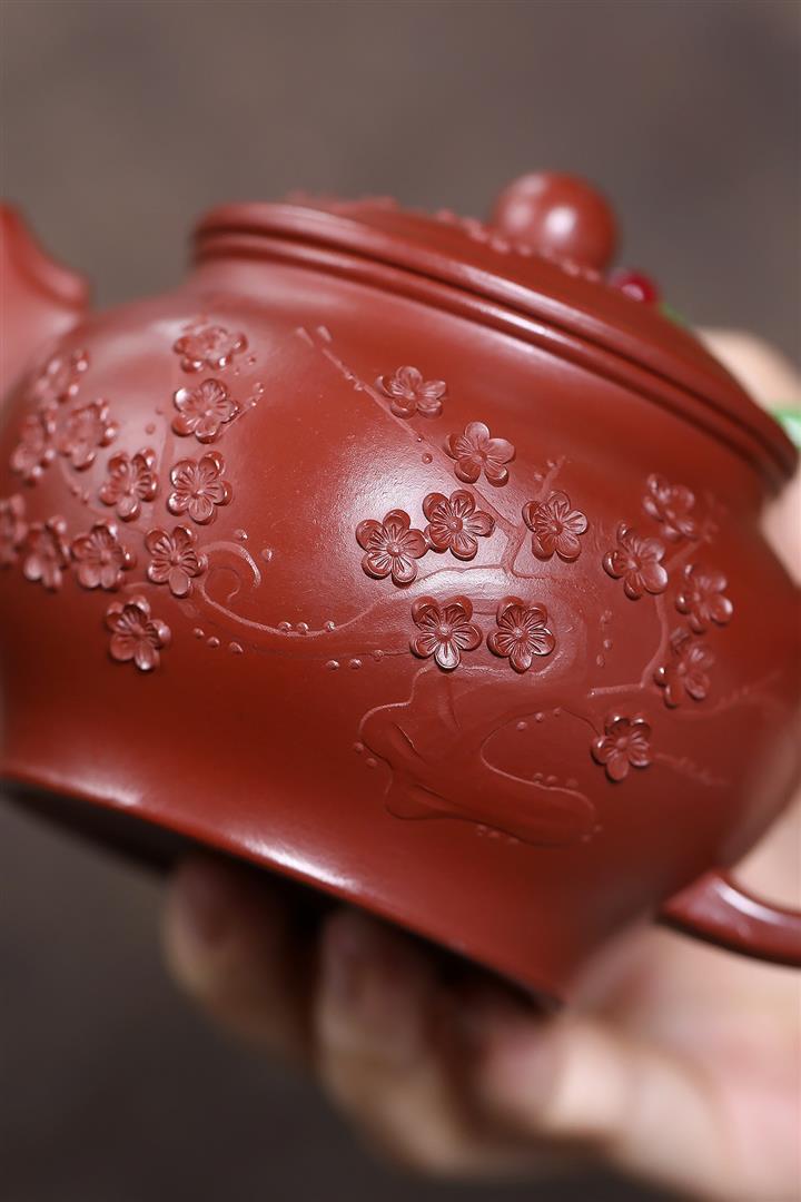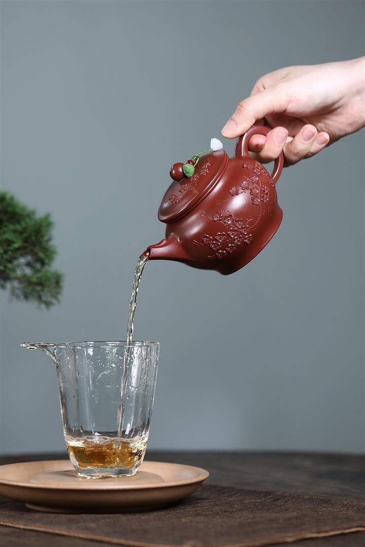 紫砂使用越久,壺身色澤越發光亮照人,氣韻溫雅。紫砂壺長久使用器身會因撫摸擦拭,變得越發溫潤光澤!