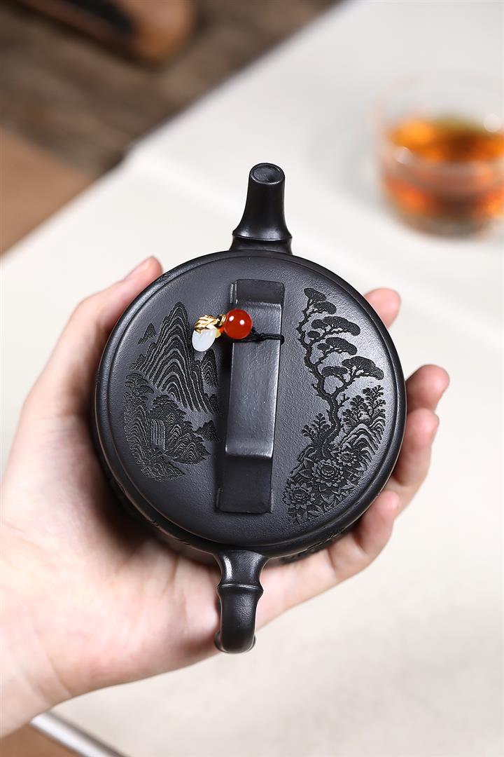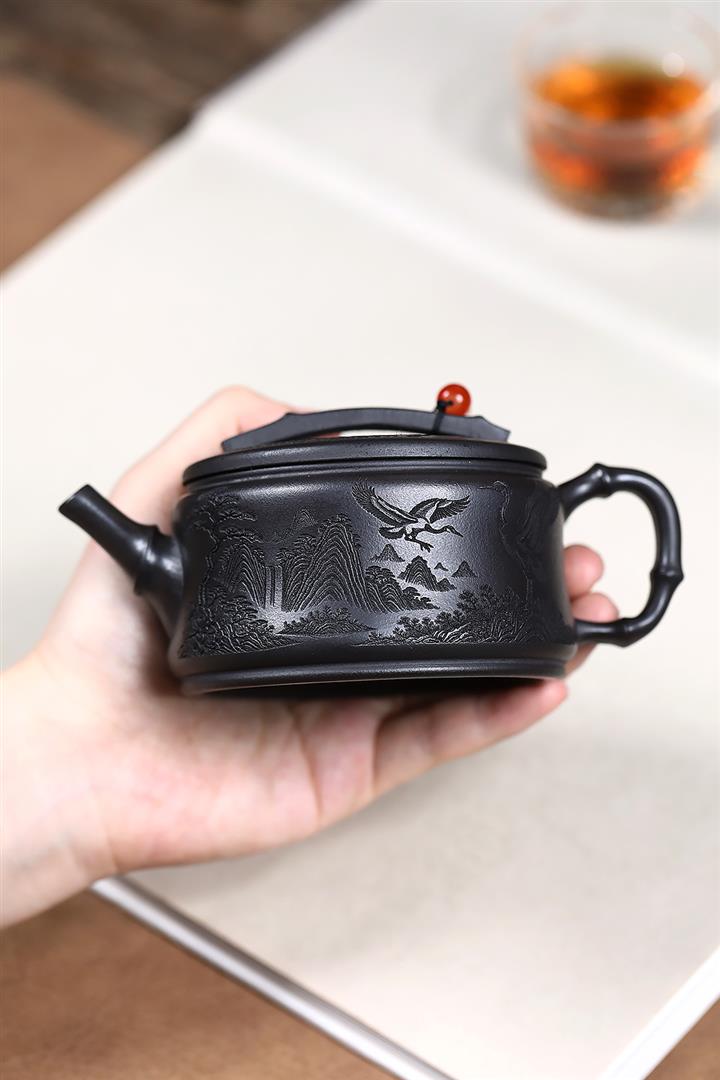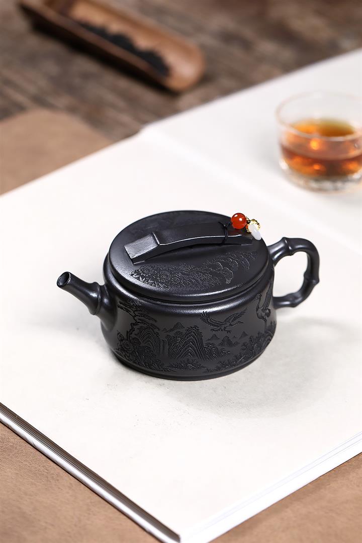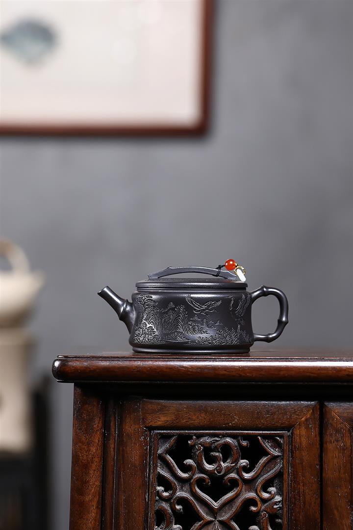 410cc原礦石黃泥彩刻蓬萊勝景茶壺POT8988