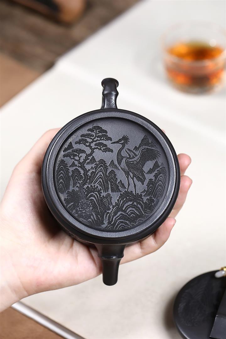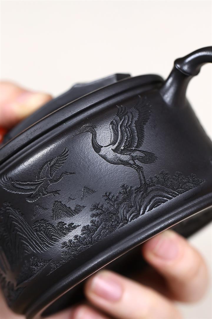 原礦玄鐵石黃仙鶴漢瓦茶壺POT7615