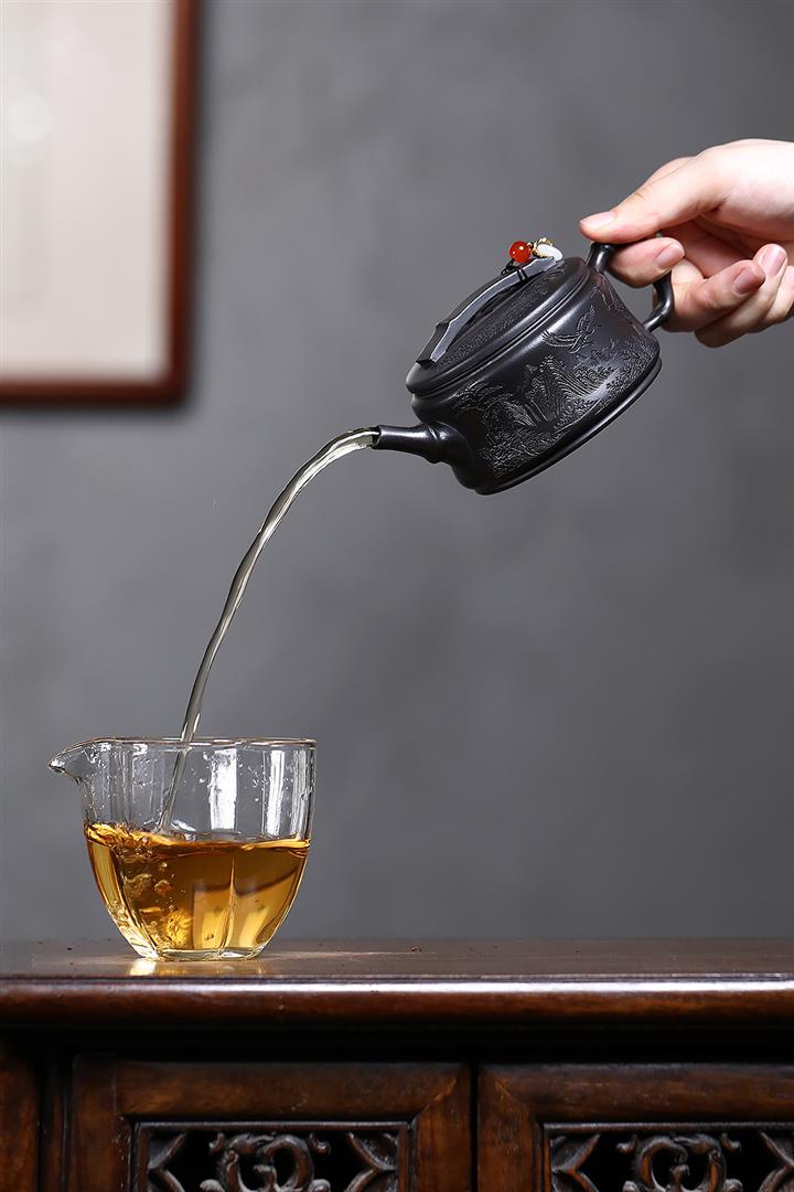 紫砂使用越久,壺身色澤越發光亮照人,氣韻溫雅。紫砂壺長久使用器身會因撫摸擦拭,變得越發溫潤光澤!