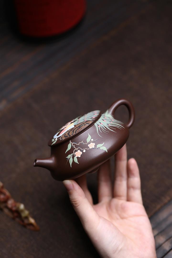 紫砂使用越久,壺身色澤越發光亮照人,氣韻溫雅。紫砂壺長久使用器身會因撫摸擦拭,變得越發溫潤光澤!